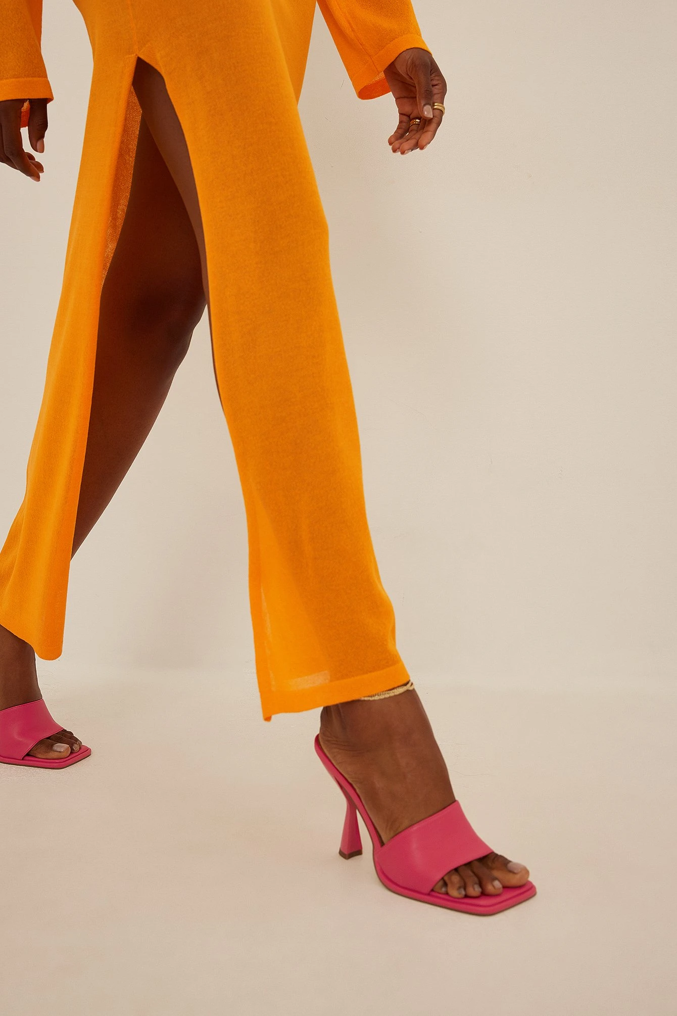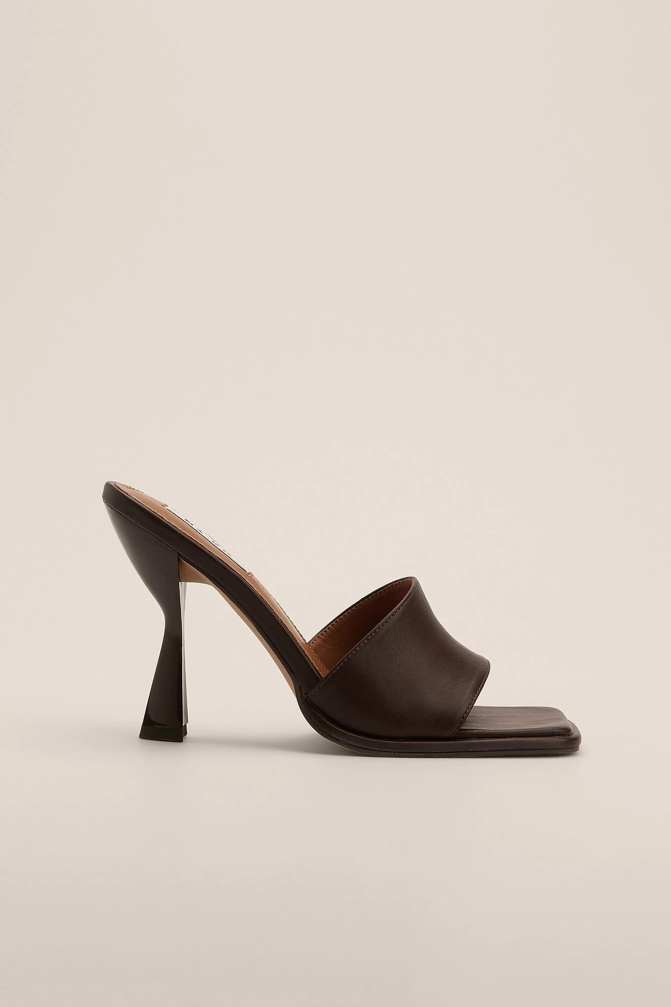 These mules feature a square toe, a wide front strap and an asymmetric heel. Measurements in size : Heel height: 10 cm / 4 in.