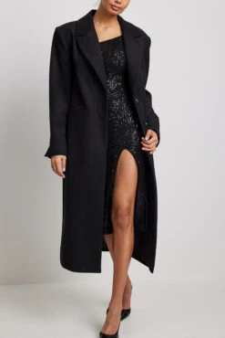 This midi dress is made of sequin and features a thin, elasticized shoulder strap, an asymmetrical design at the neck and a slit detail.