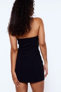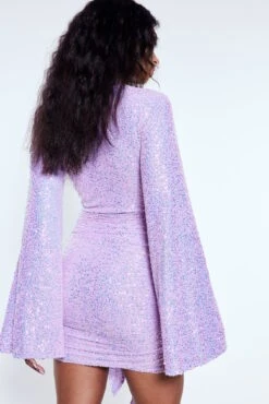 This dress features long balloon sleeves, a mini length, a flowy fit, a rounded neckline, a zipper closure at the back and underlining.
