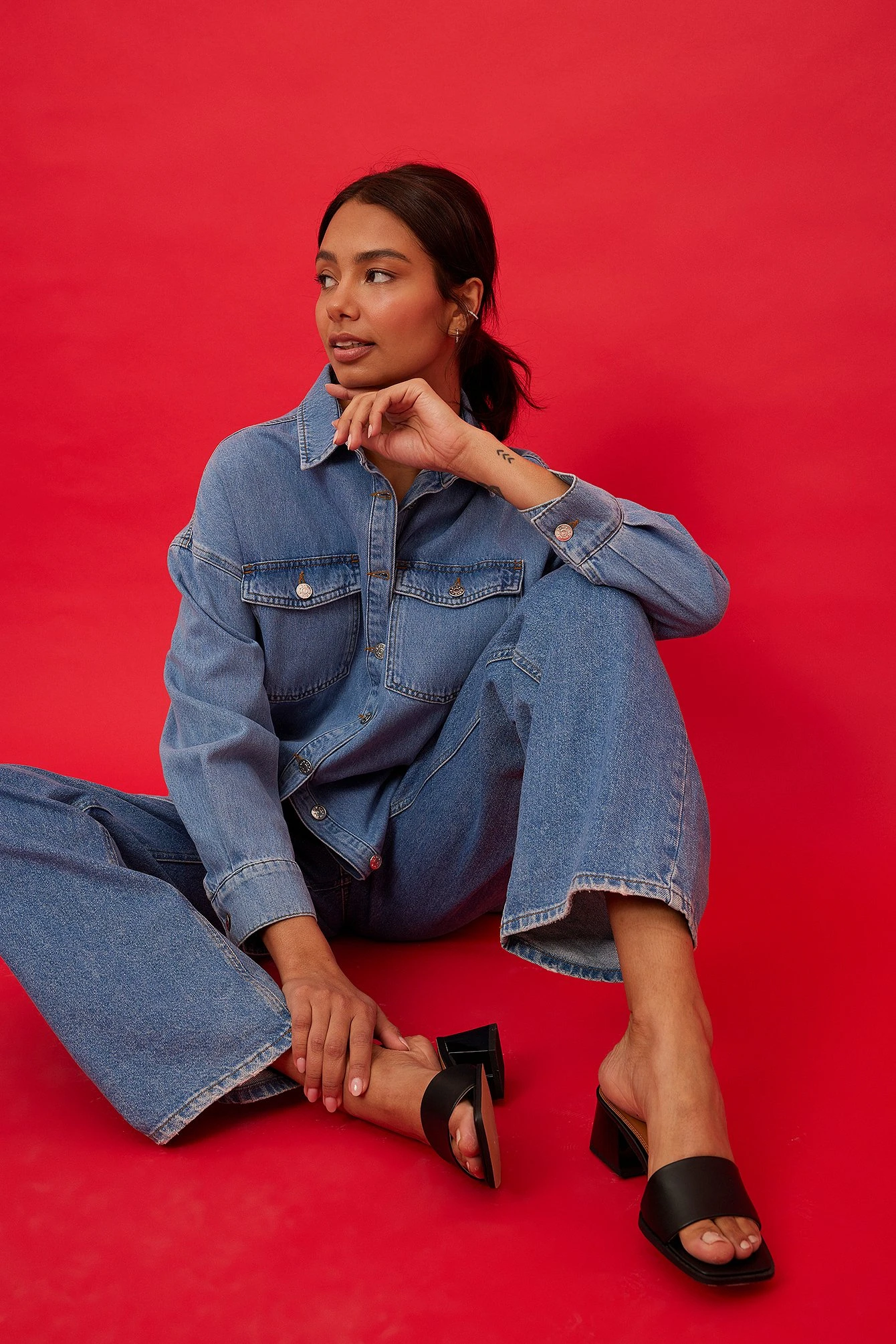 This mule features a squared toe, a thick strap at the top and a block heel. Measurements in size 39: Heel height: 5,5 cm / 2,1 on..