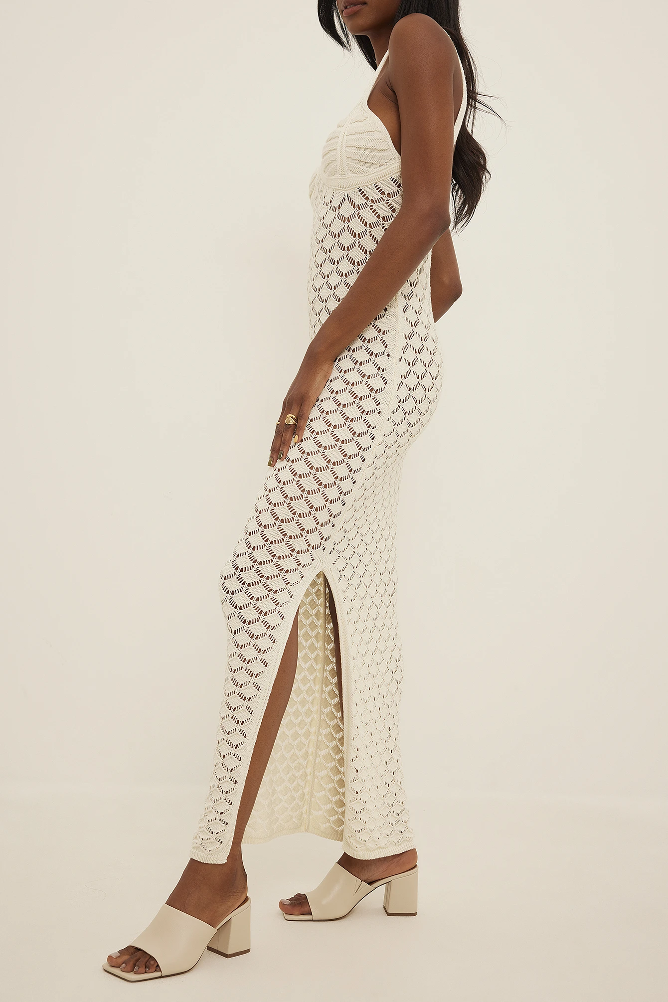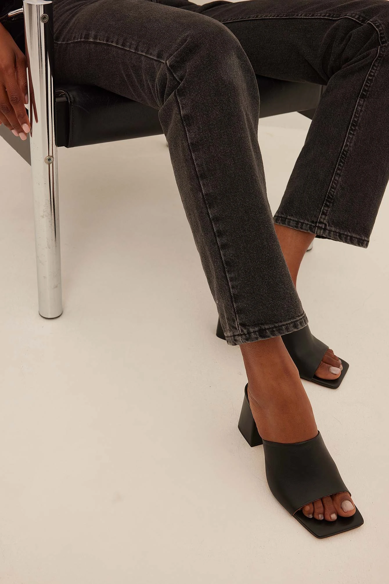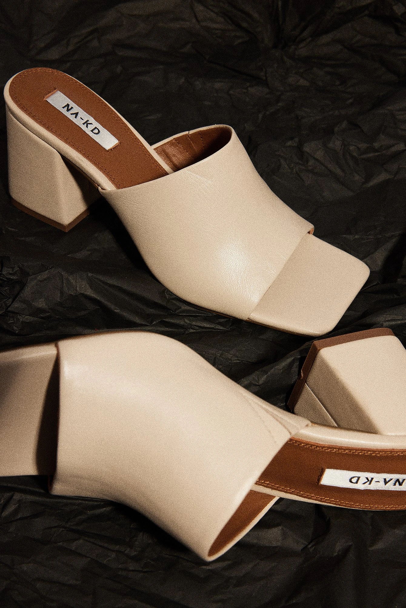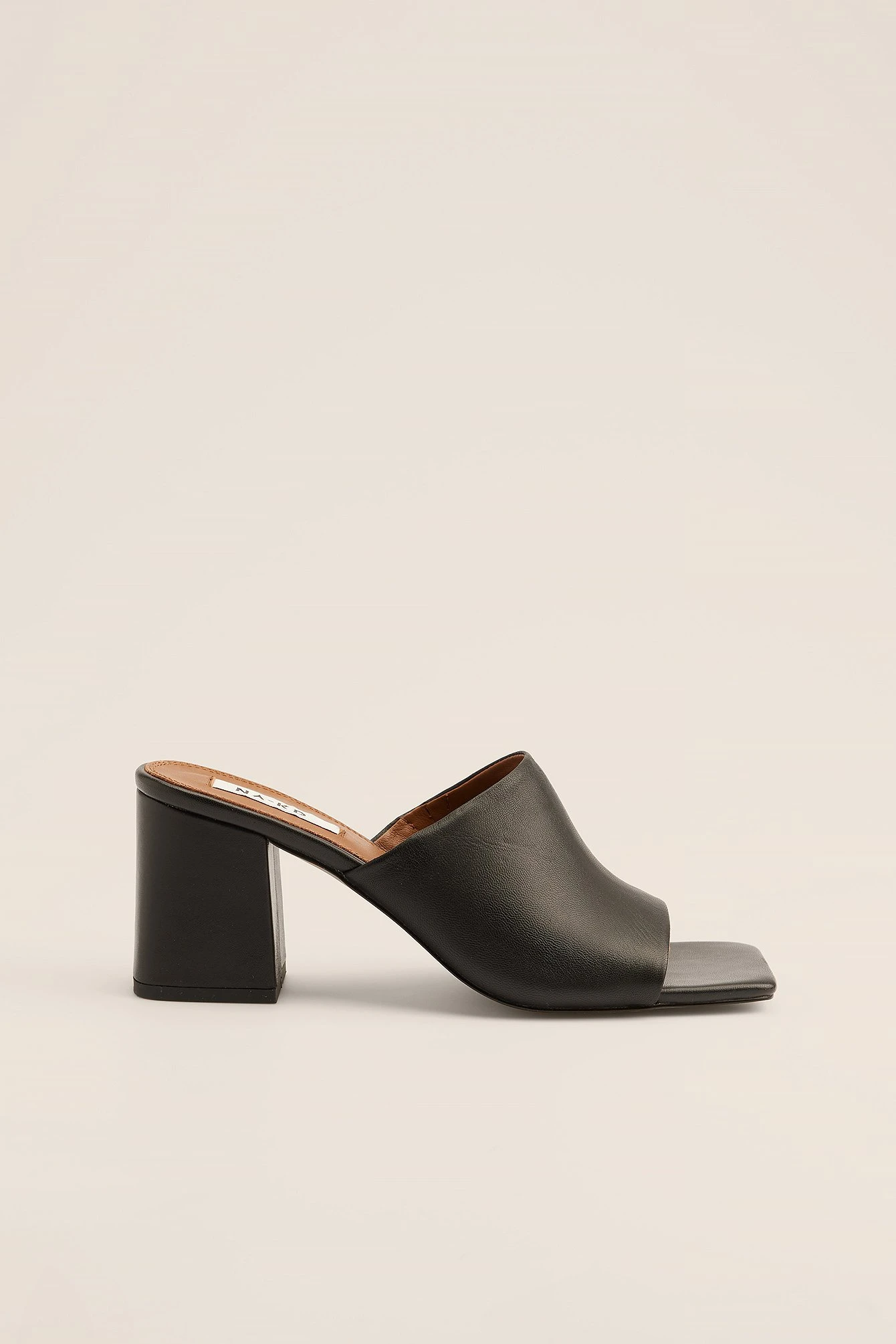 These mules are made of leather and feature a square, open toe, a block heel, a wide strap with a hidden, elastic detail on the inside and a slip-on design. Measurements in size EU 39: Heel height: 8 cm / 3,5 in. Insole length: 25,5 cm / 10,02 in.