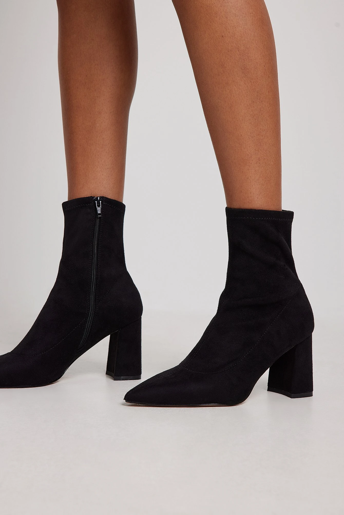 These boots are ankle high and feature a pointed toe and a slightly stretchy shaft with a zipper on the inside. Measurements in size : Heel height: 8,5 cm / 3.3 in. Shaft height: 15,5 cm / 6.1 in. Shaft circumference around the calf: 25 cm / 9.8 in.