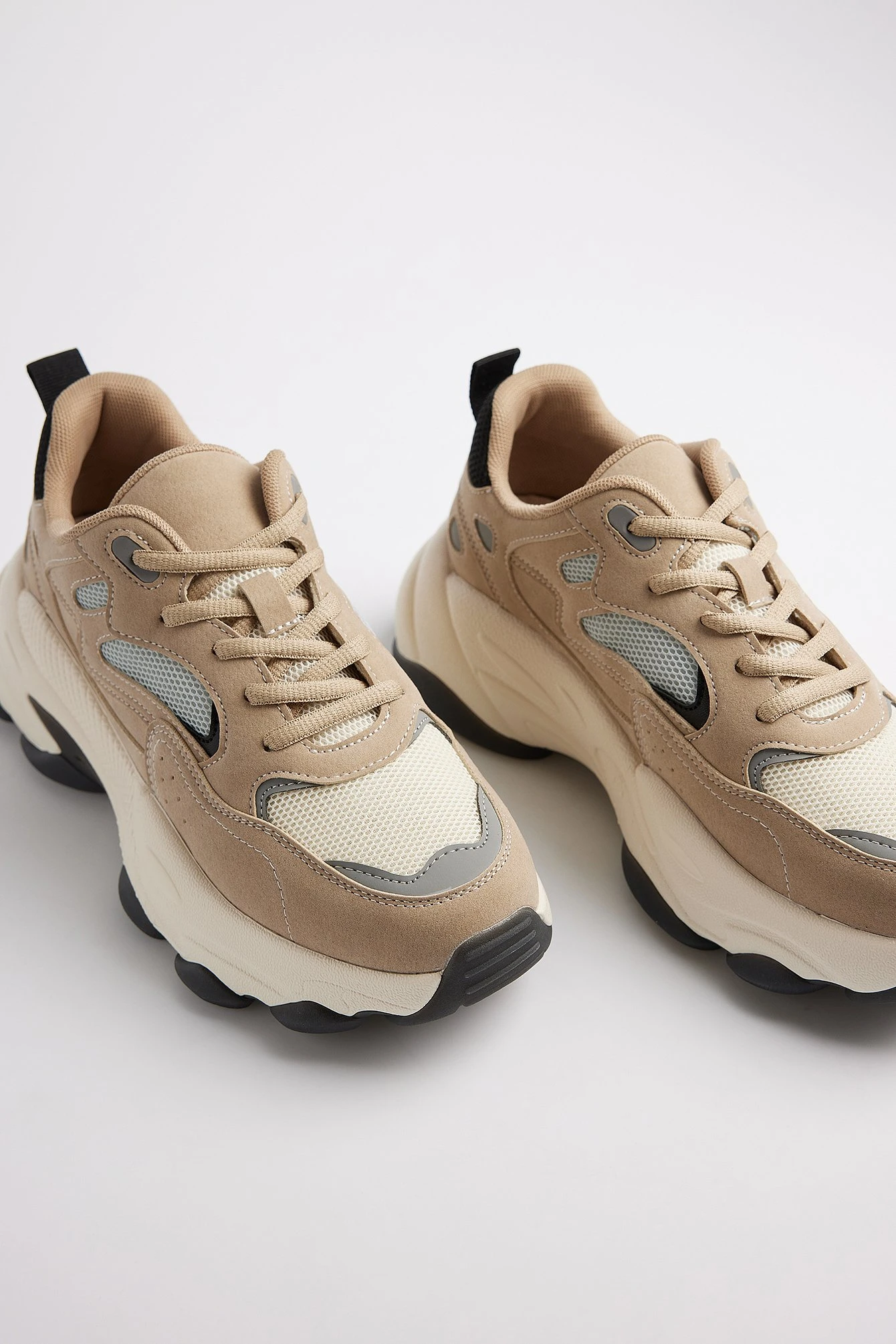 These trainers are cool and feature a lace up design. They have mesh details and details in PU. These trainers feature details with a suede look and extra chunky rubber soles. Sole Height: 6 cm / 2.36 in.