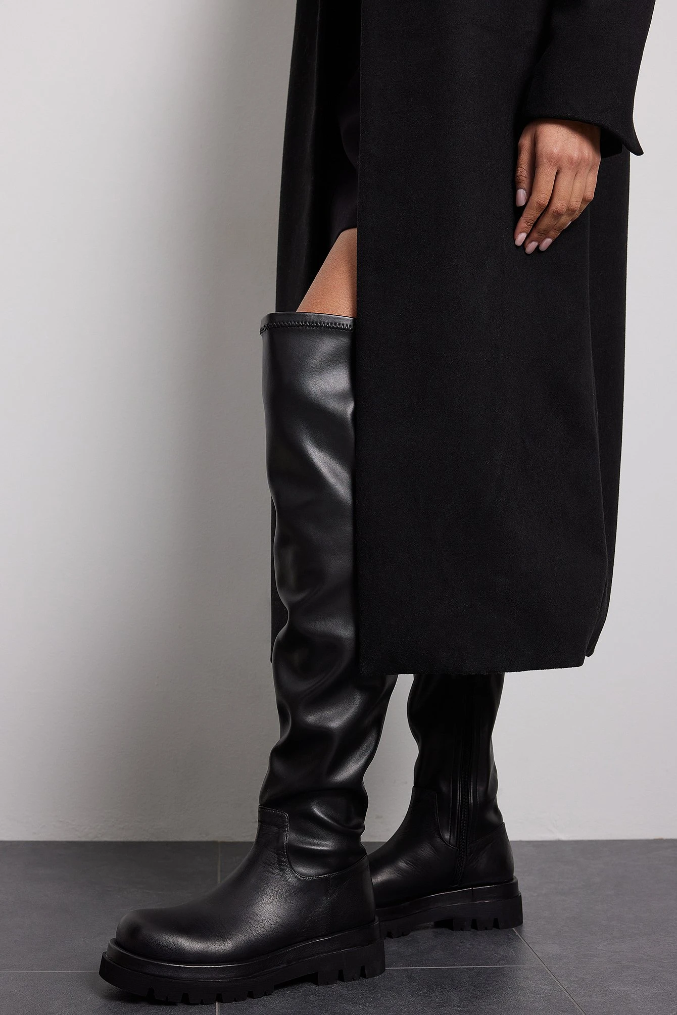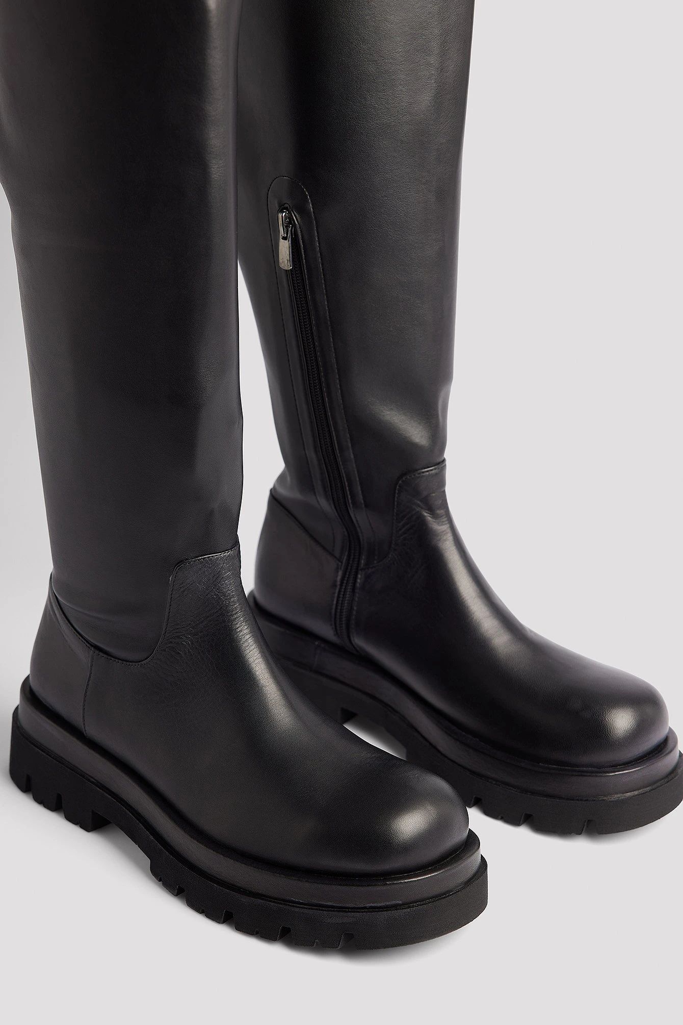 These boots feature a tight thigh high design. They have a chunky sole. Measurements in size 39: Sole height: 5 cm / 1.96 in. Shaft height: 51 cm / 20 in. Shaft circumference around the calf: 36 cm / 14.17.