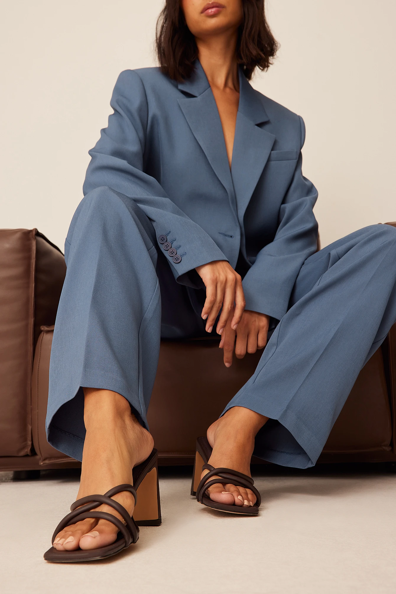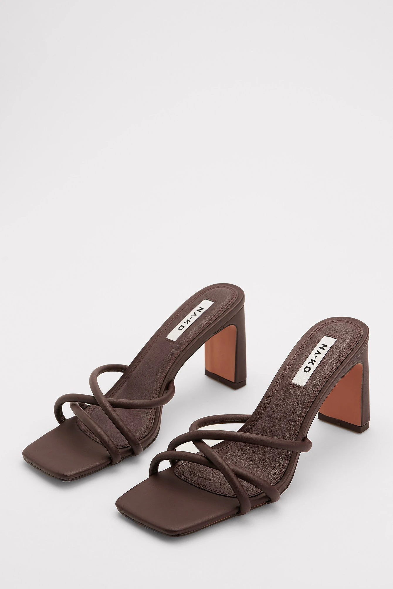 This heeled sandal features crossed straps on the front and a squared heel. Measurements in size 39: Heel height: 8,2 cm / 3.2 in.