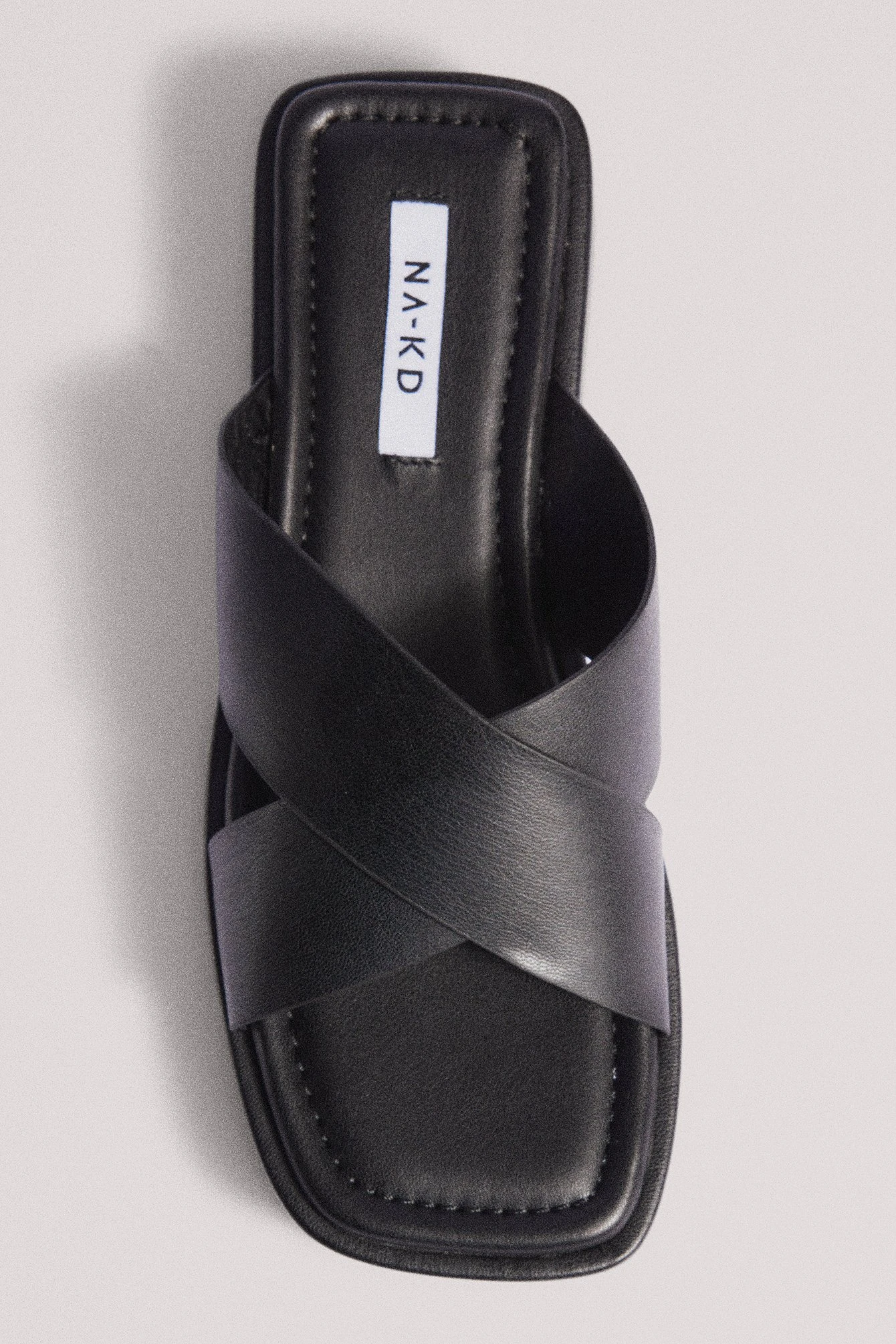 This slipper is made of PU and features a slight platform. It has a square toe and a wide cross strap. Measurements in size : Sole height: 5 cm / 1.96 in.