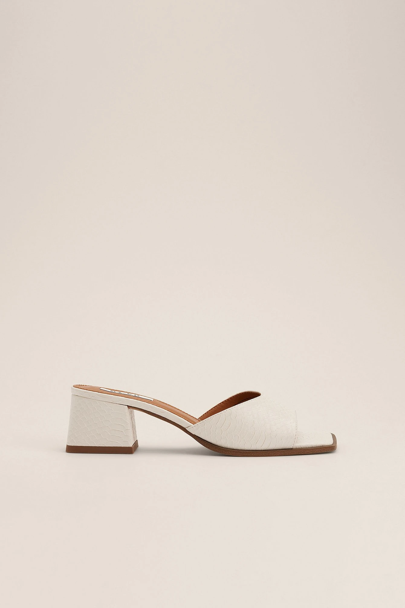 These mules feature a square, open toe, a wide, curved strap, a block heel and a faux snake skin material. Measurements in size EU 39: Heel height: 6 cm / 2.36 in. Insole length: 25,5 cm / 10 in.