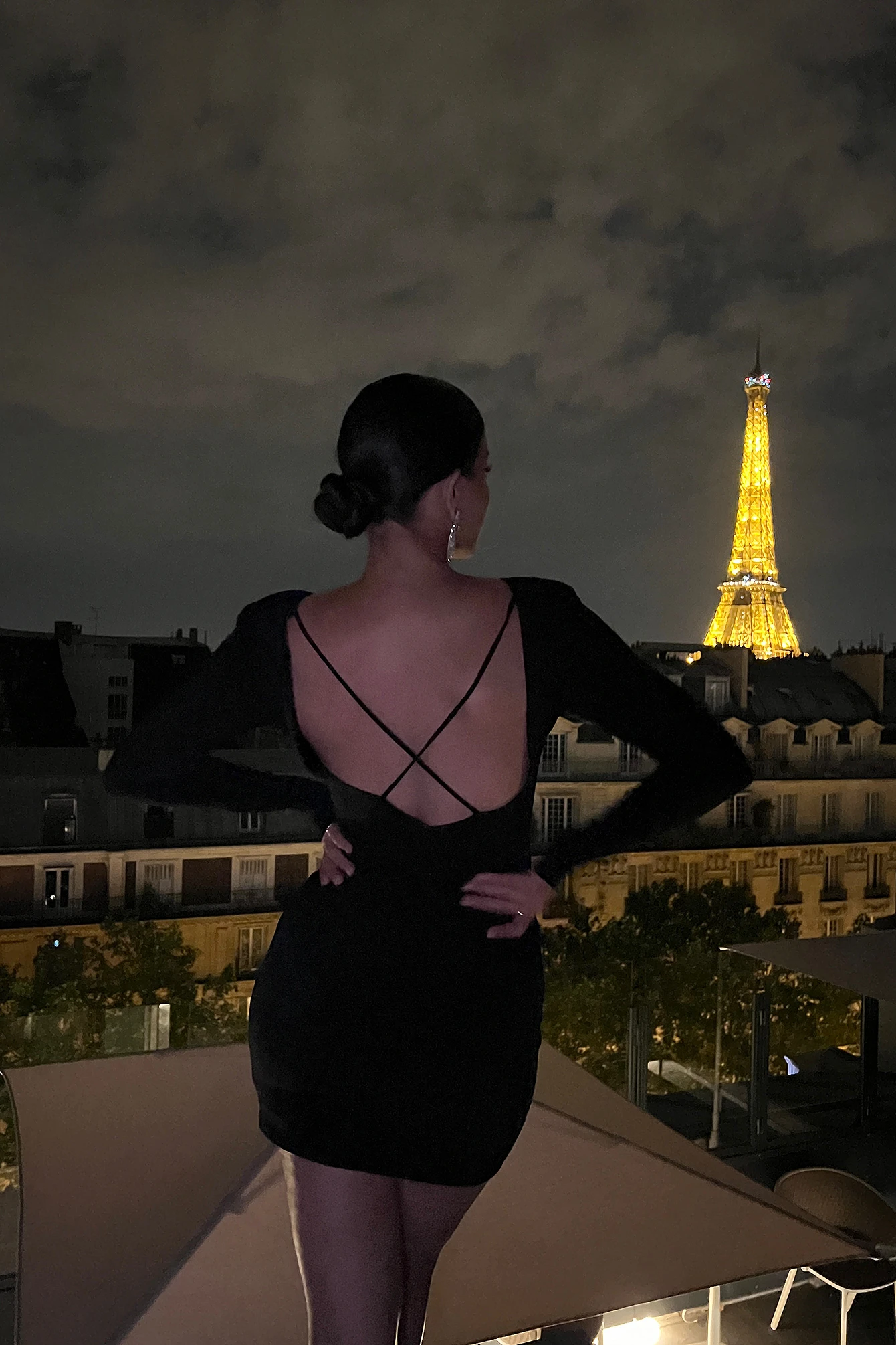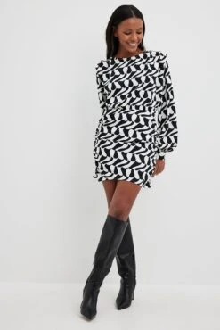 This mini dress features shoulder pads. It has cut out details at the front and at the back and a stretchy material.