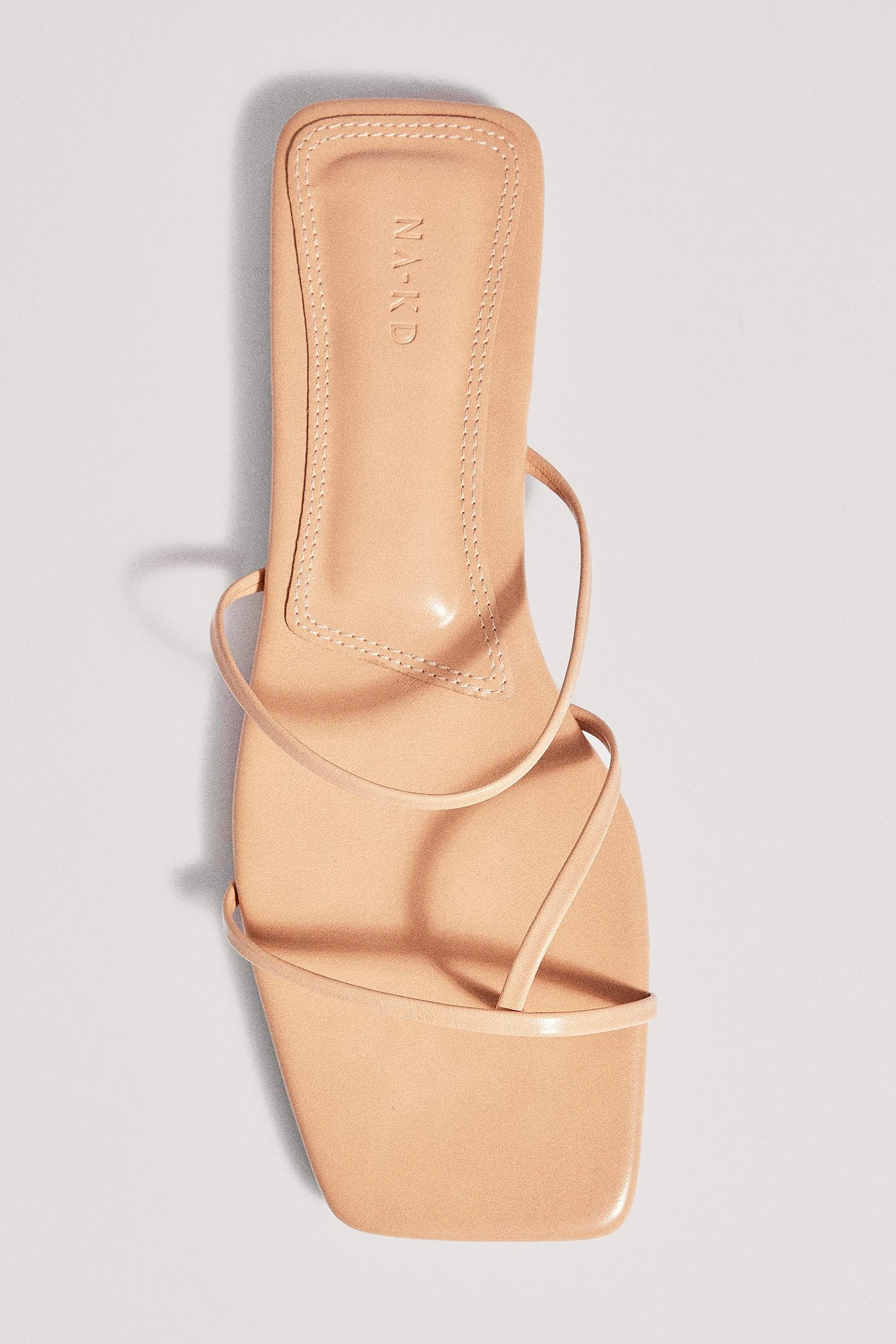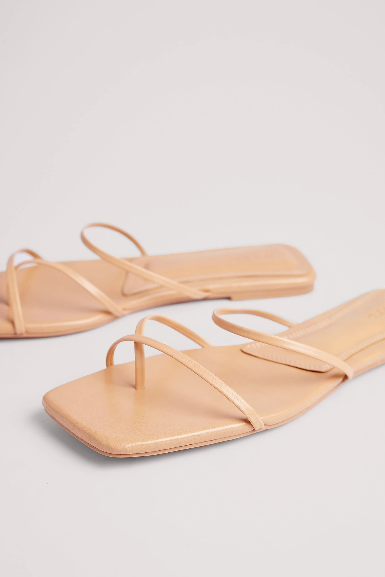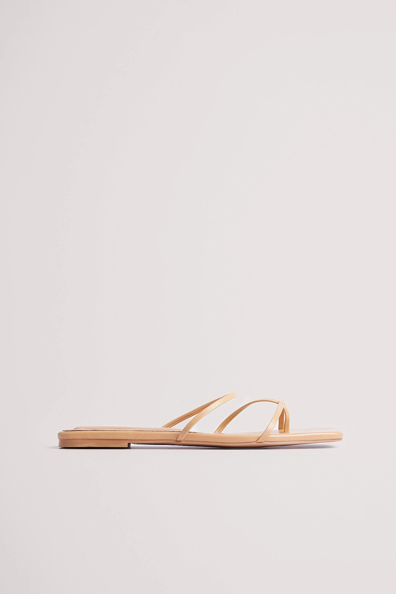 This slipper is flat and features a flip-flop. It has a square toe and straps at the front. Measurements in size 39: Sole height: 0,6 cm / 0.2 in.