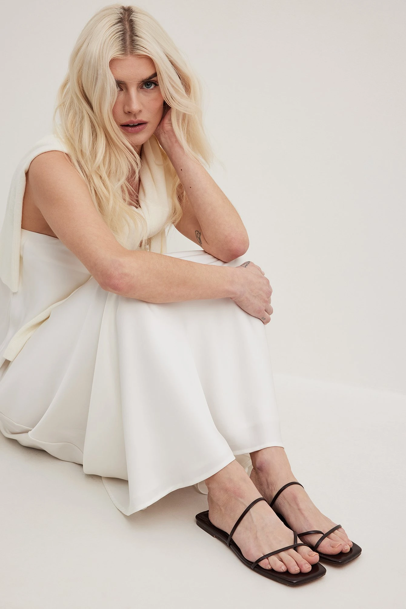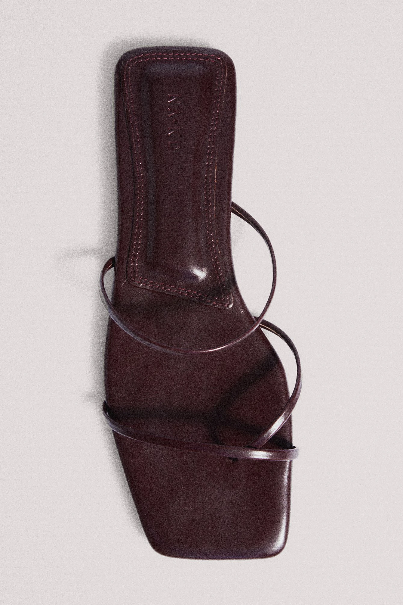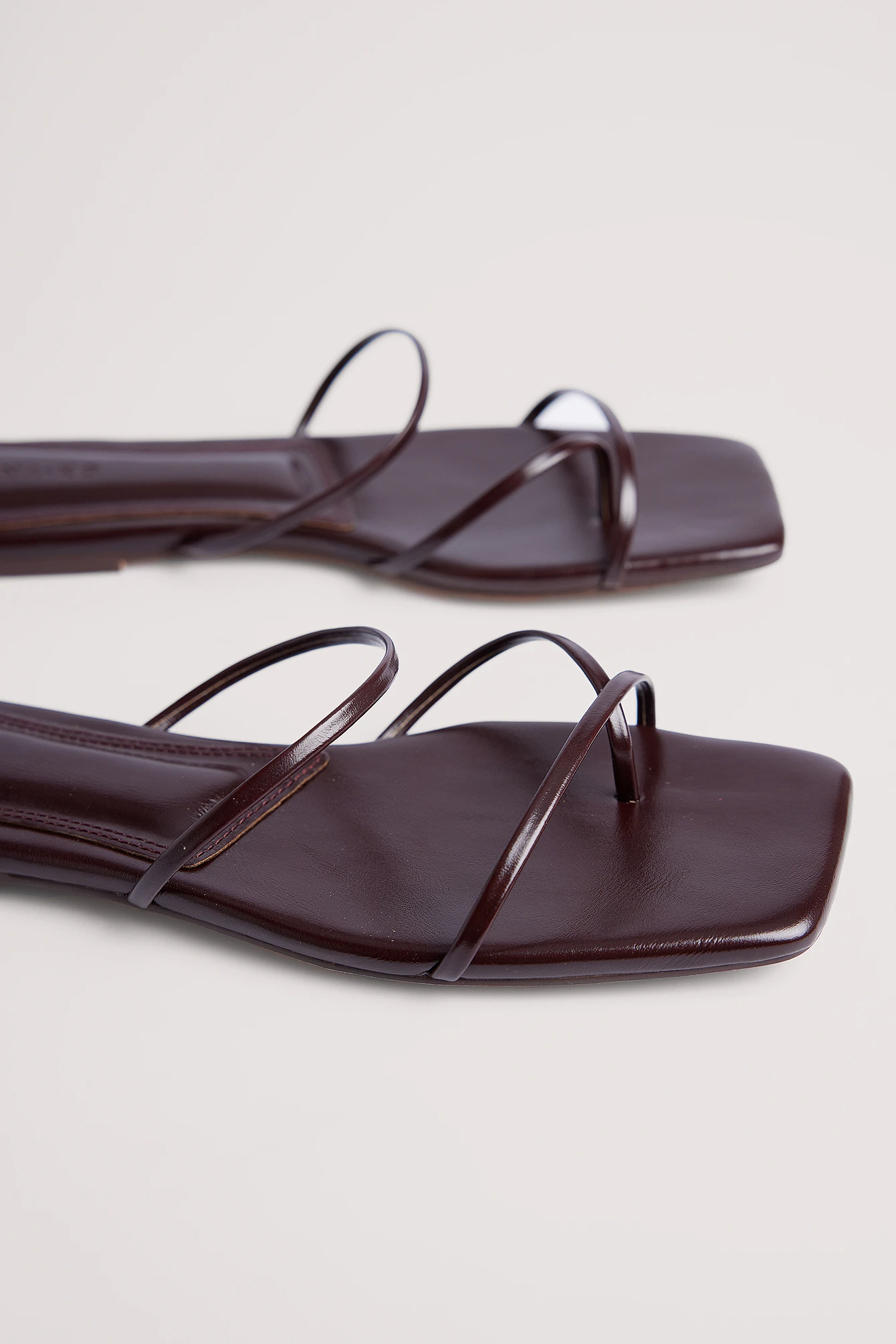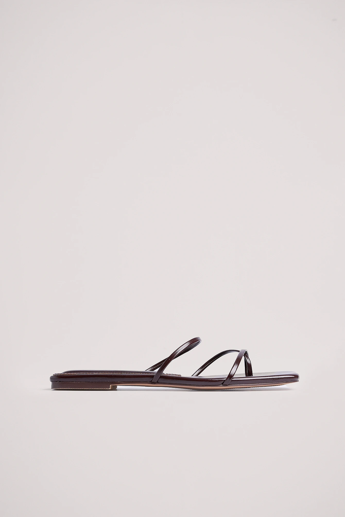 This slipper is flat and features a flip-flop. It has a square toe and straps at the front. Measurements in size 39: Sole height: 0,6 cm / 0.2 in.