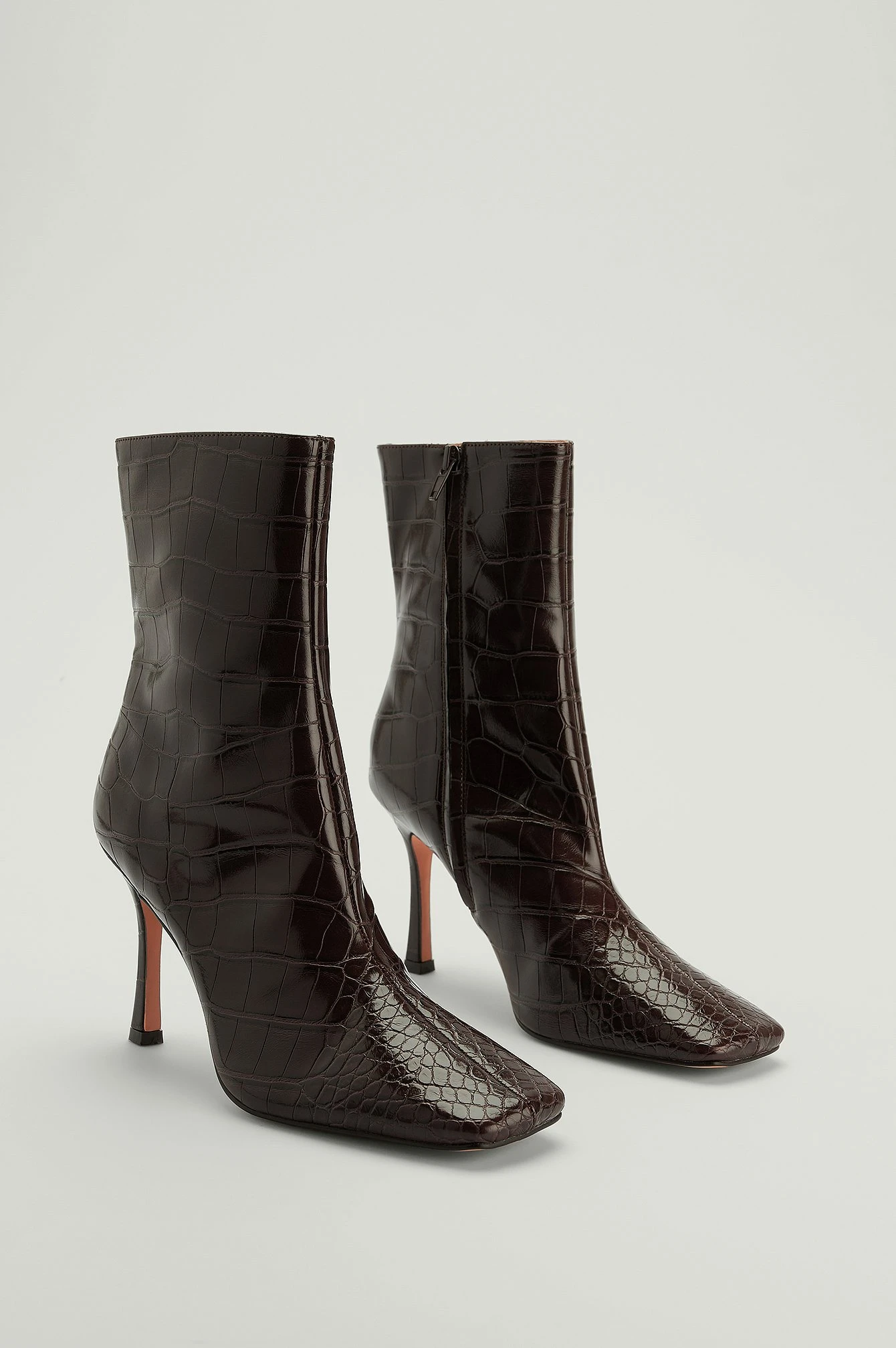 These boots are calf high and made of PU and feature a stiletto heel. They have a reptile pattern and a side zipper. These boots feature a squared toe. Measurements in size EU 39: Heel height: 9 cm / 3.54 in. Shaft height: 17 cm / 6.69 in. Shaft circumference around the calf: 30 cm / 11.81 in.