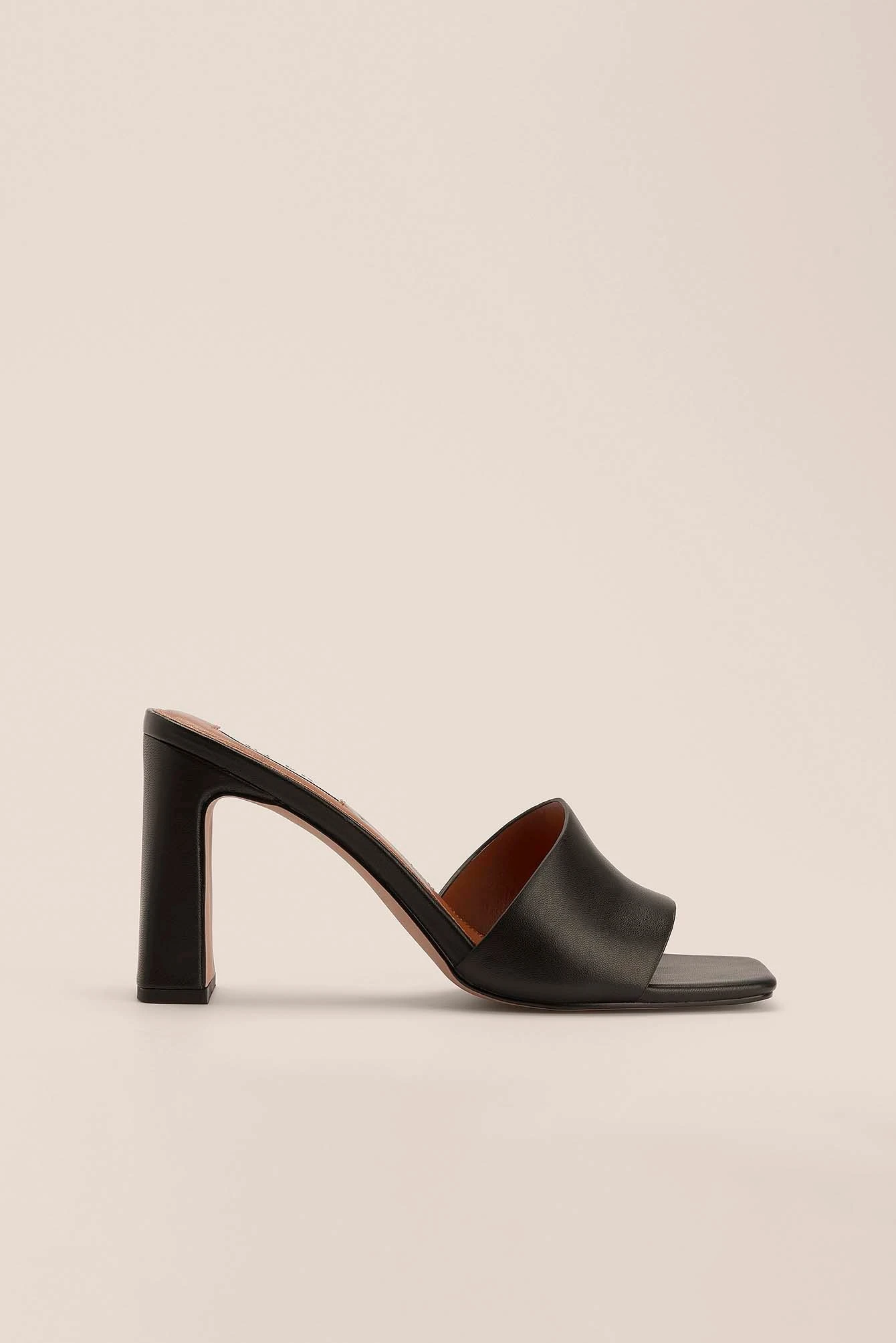 These heels feature squared, open toes, a wide strap and a flared high heel. Measurements in size 39: Sole height: 0,7 cm / 0.4 in. Heel height: 9,5 cm / 3.11 in. Insole length: 24,5 cm / 9.11 in.