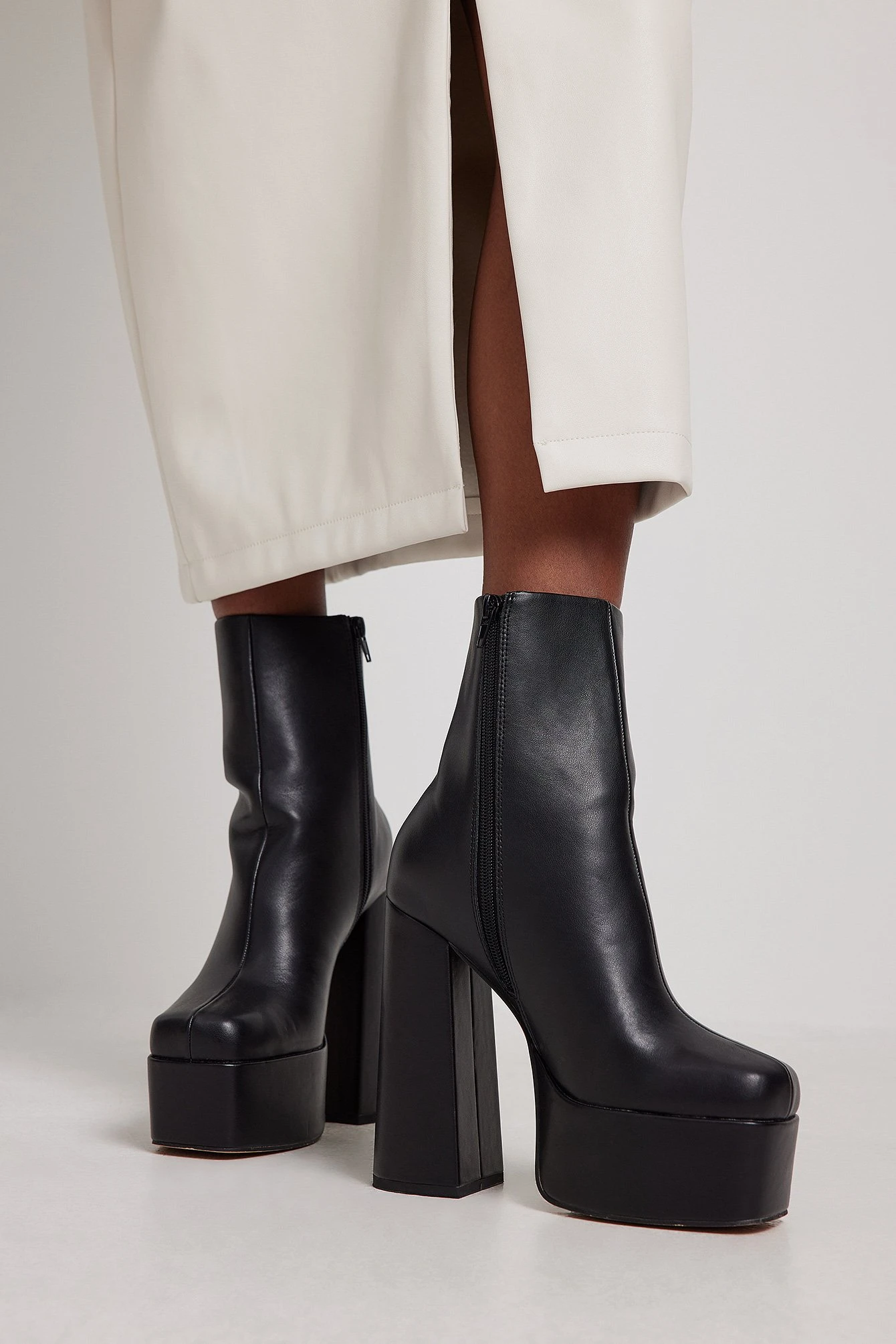 These boots feature a square toe, a side zipper closure, a plateau and a block heel. Measurements in size 39: Sole height: 5 cm / 2 in. Heel height: 14,5 cm / 5.6 in. Shaft height: 15 cm / 5.9 in. Shaft circumference around the calf: 26 cm / 10.1 in.