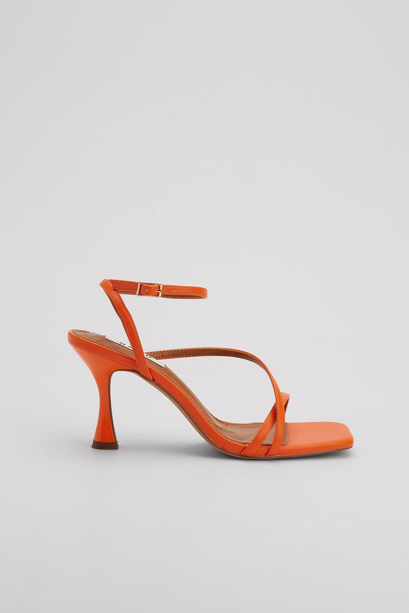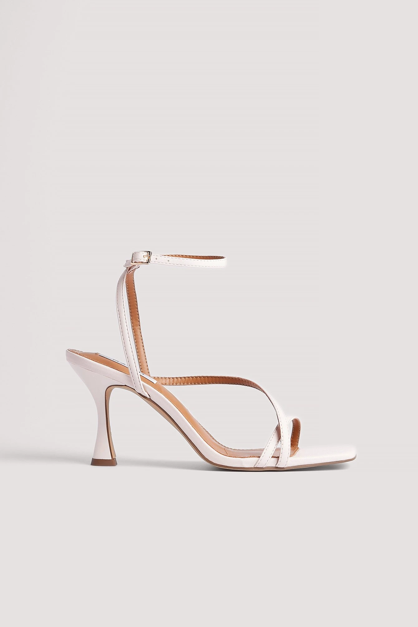 These heels are made of PU-leather and feature an ankle-strap fastening. They have a square toe and a thin heel. Heel Height: 8 cm / 3.14 in.