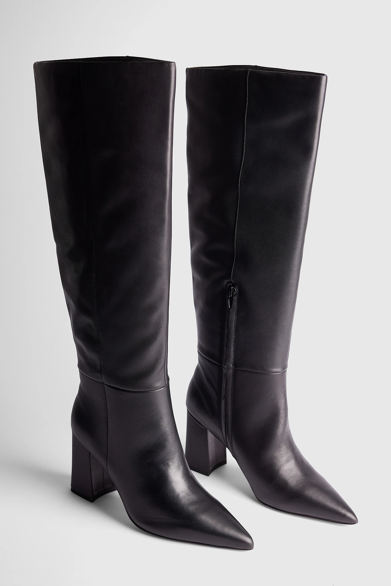 Leather Pointy Block Heel Boots -Na-Kd nakd leather pointy block heel boots 1055 001340 0002 0528
