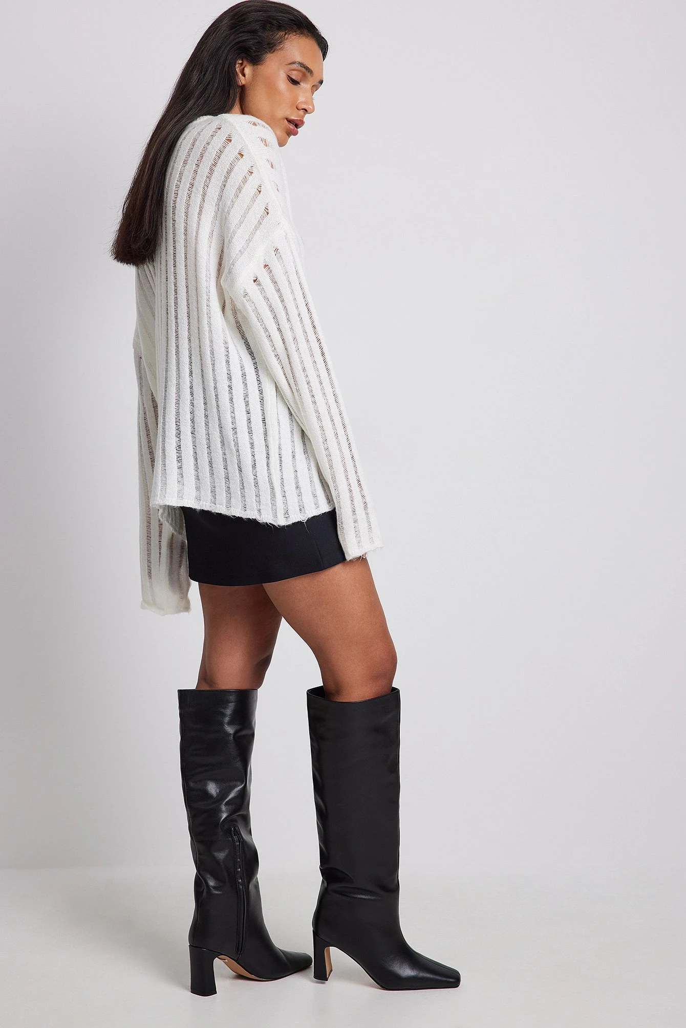 These boots feature a square toe, a knee high design, a wide shaft, a block heel and a half-up zipper on the side. Measurements in size 39: Heel height: 9 cm / 3.54 in. Shaft height: 45 cm / 17.71 in. Shaft circumference around the calf: 43 cm / 17 in.