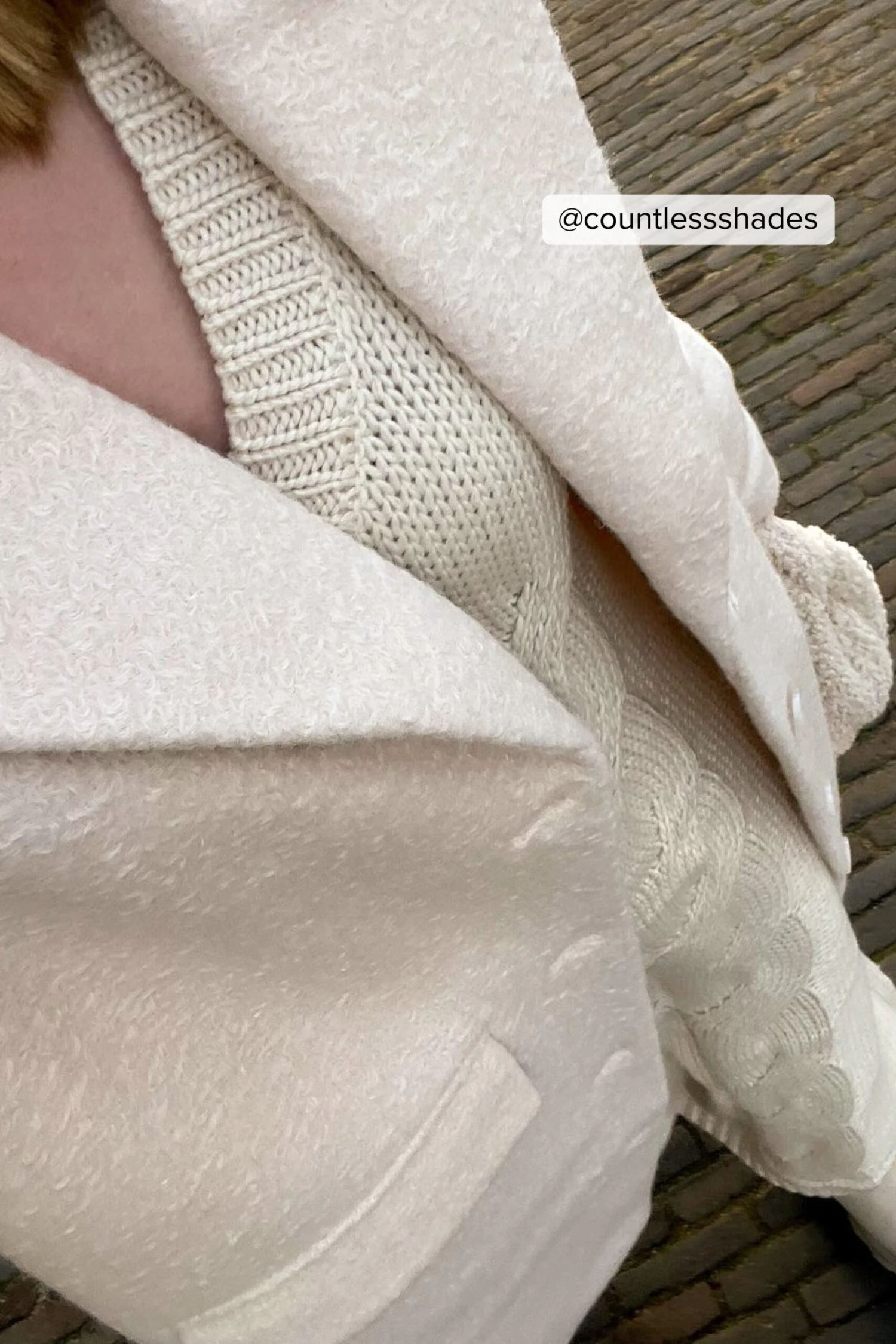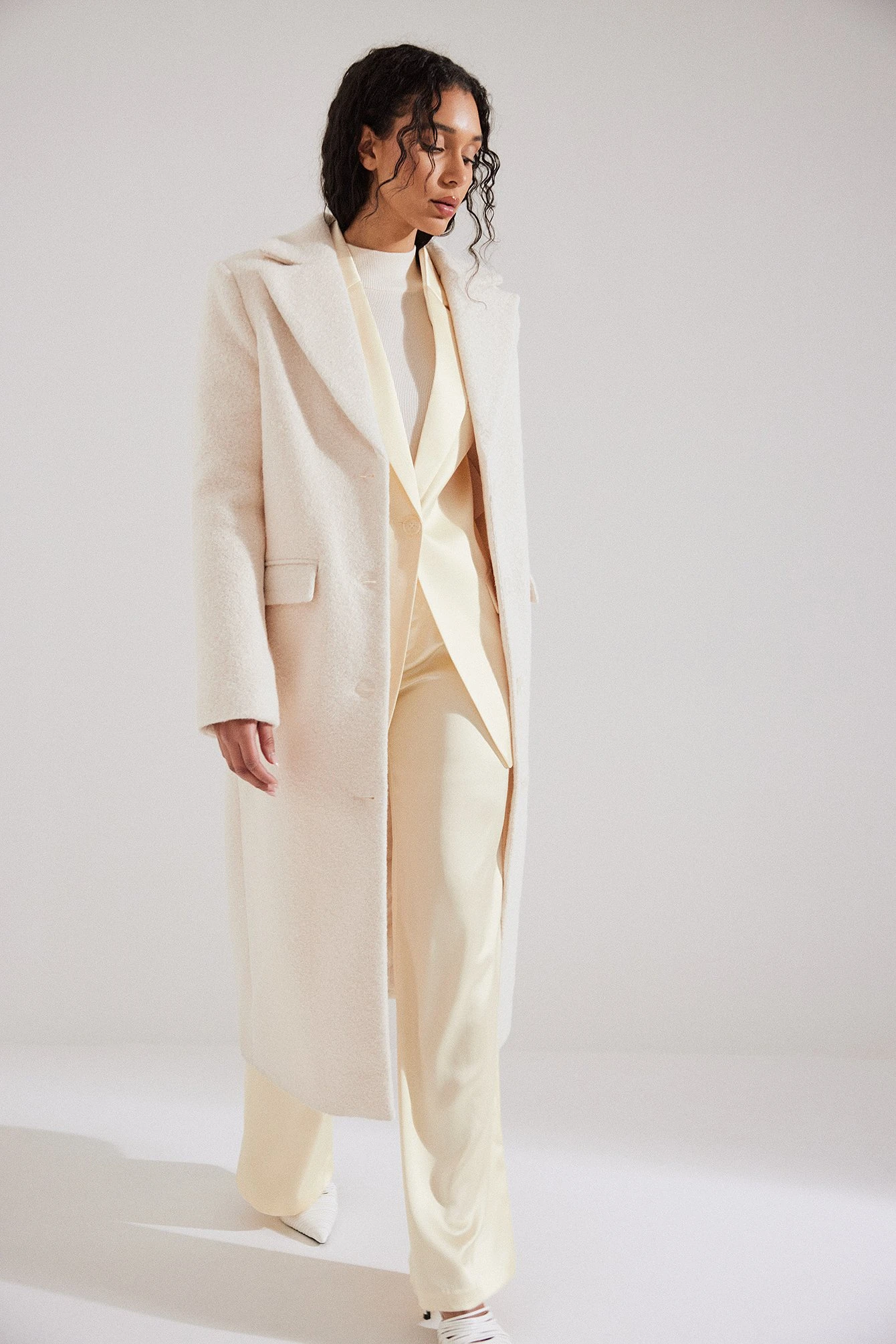 This coat features a maxi length. It has a straight fit and a fabric lining. This coat features button closures down the front, button cuffs and two front flap pockets.
