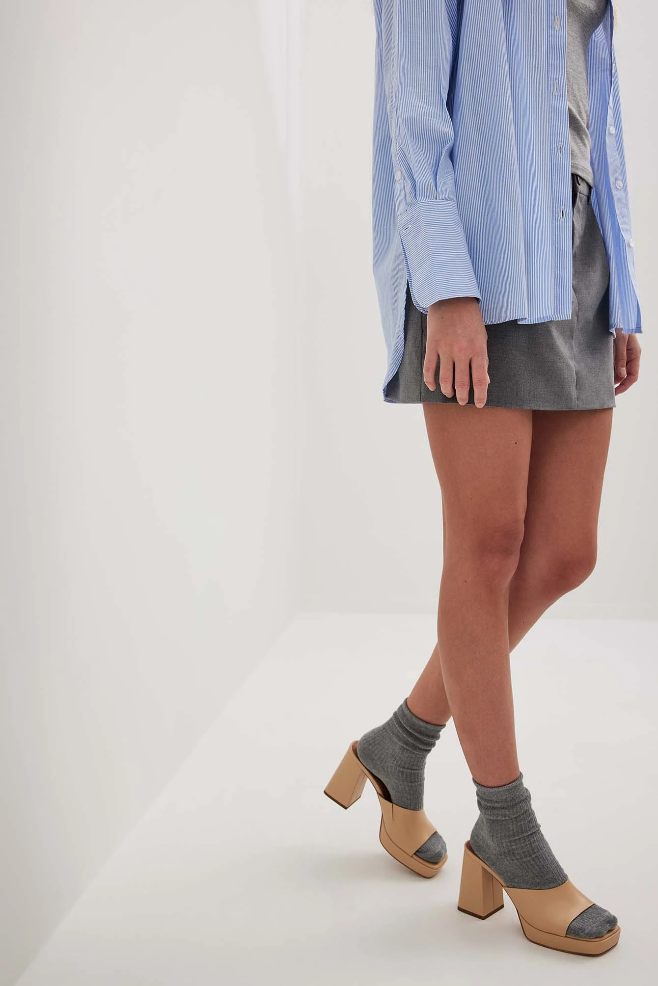 These mules are high-heeled and feature a square toe with a wide foot strap with an elastication on one side. They have a high block heel. Measurements in size 39: Heel height: 9,5 cm / 3.8 in.