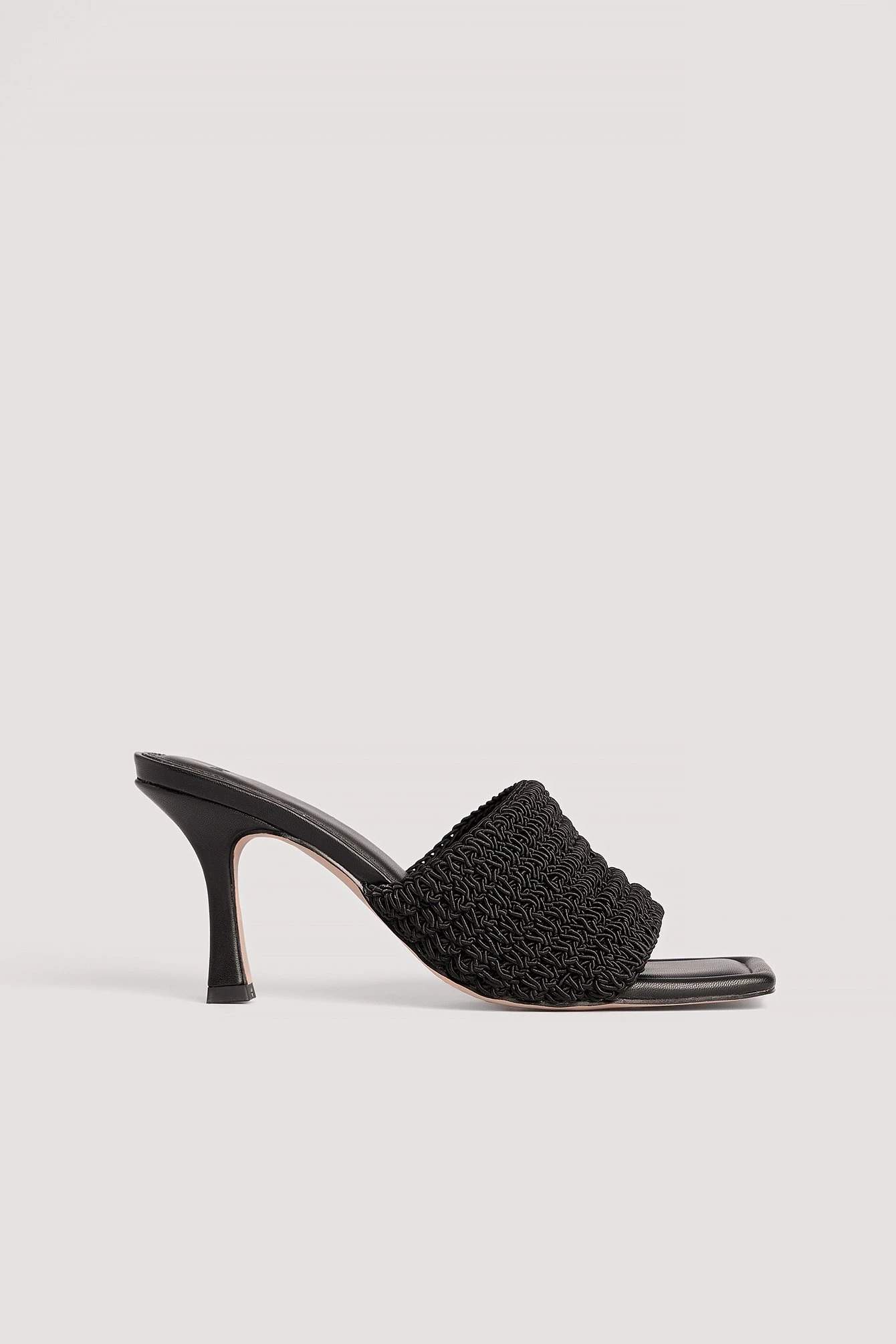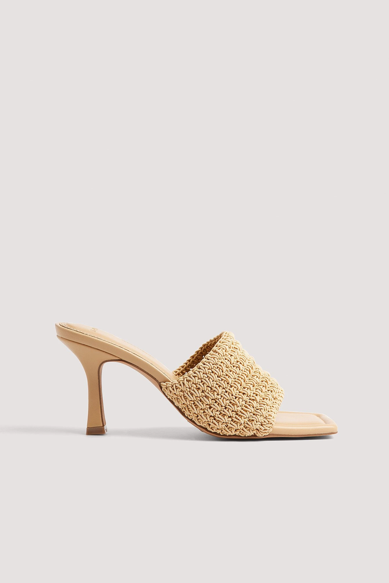 These mules feature a peep toe. They have a heeled sandal and an open back. Measurements in size 39: Heel height: 8 cm / 3.1 in.