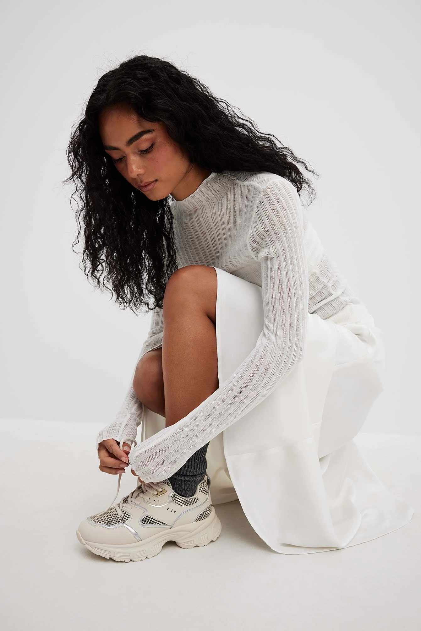 These trainers are chunky and textured and feature a lace up design. They have a comfy fit. Measurements in size 39: Sole height: 4,5 cm / 1.7 in.