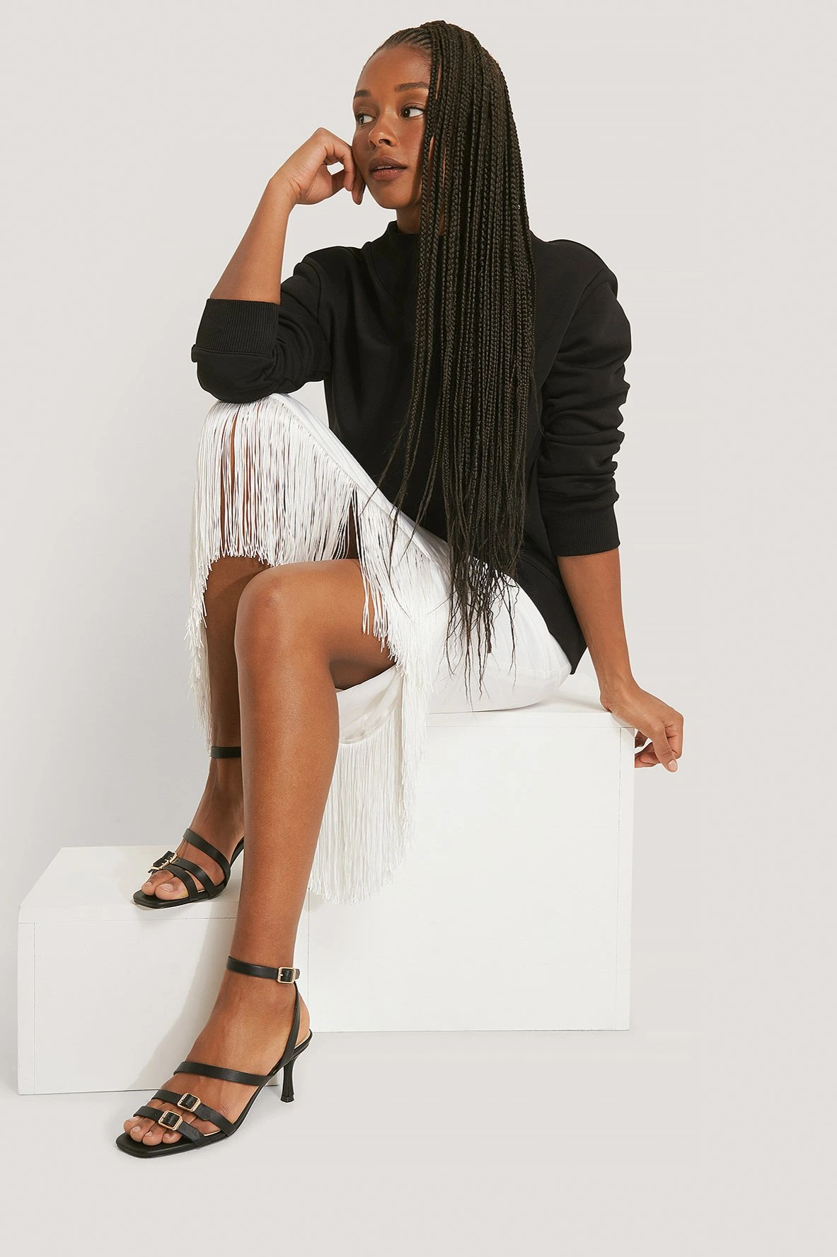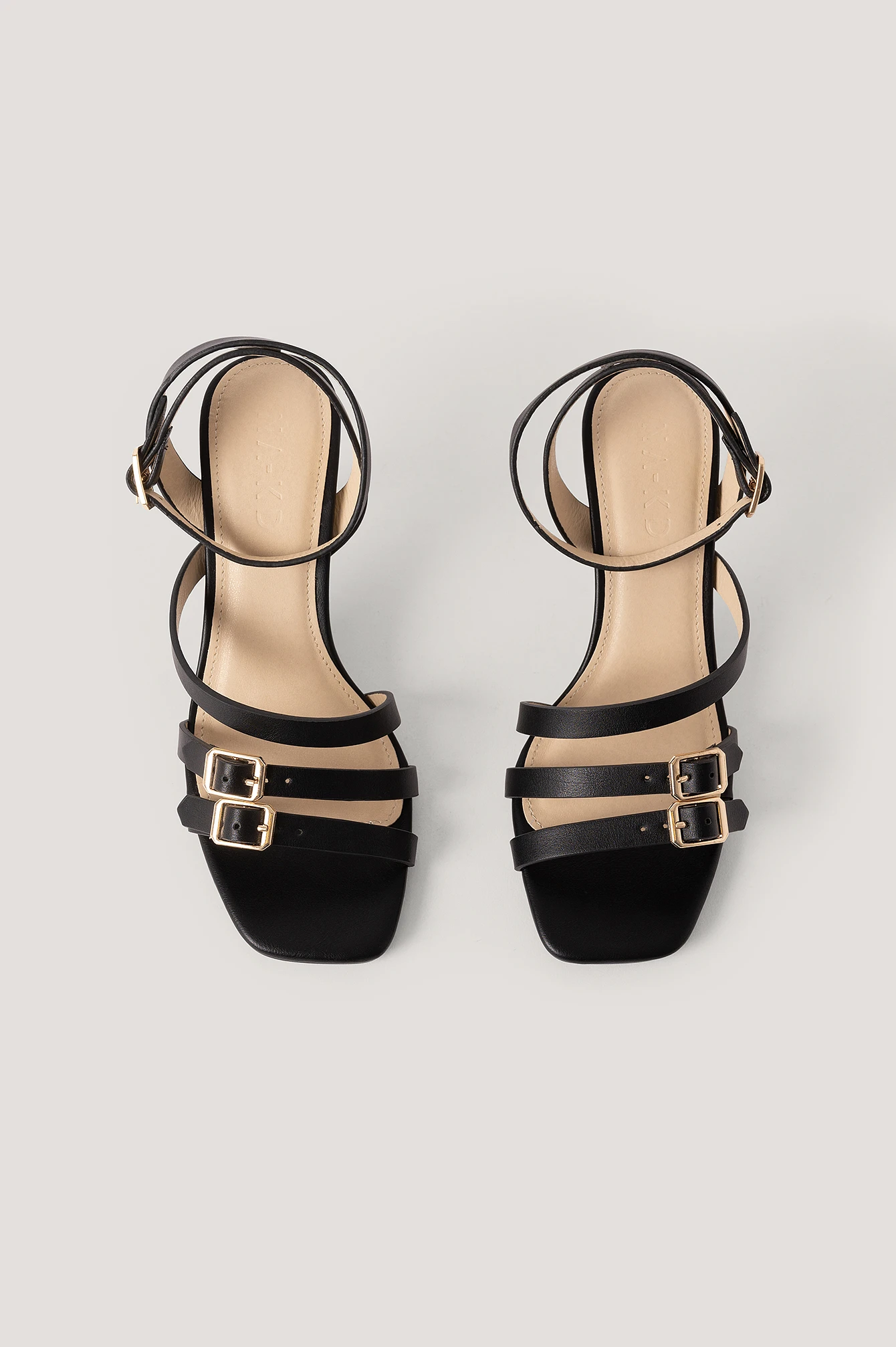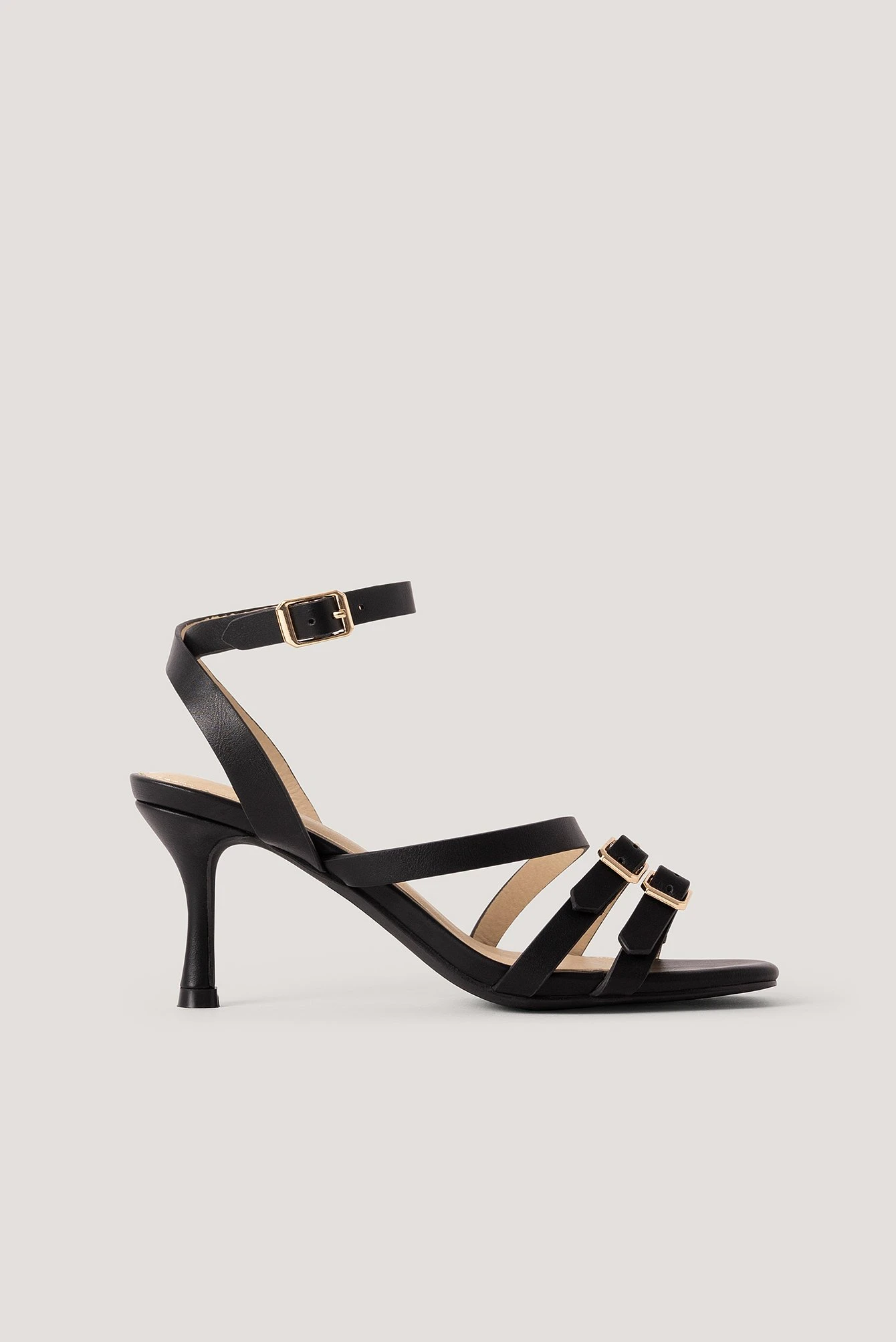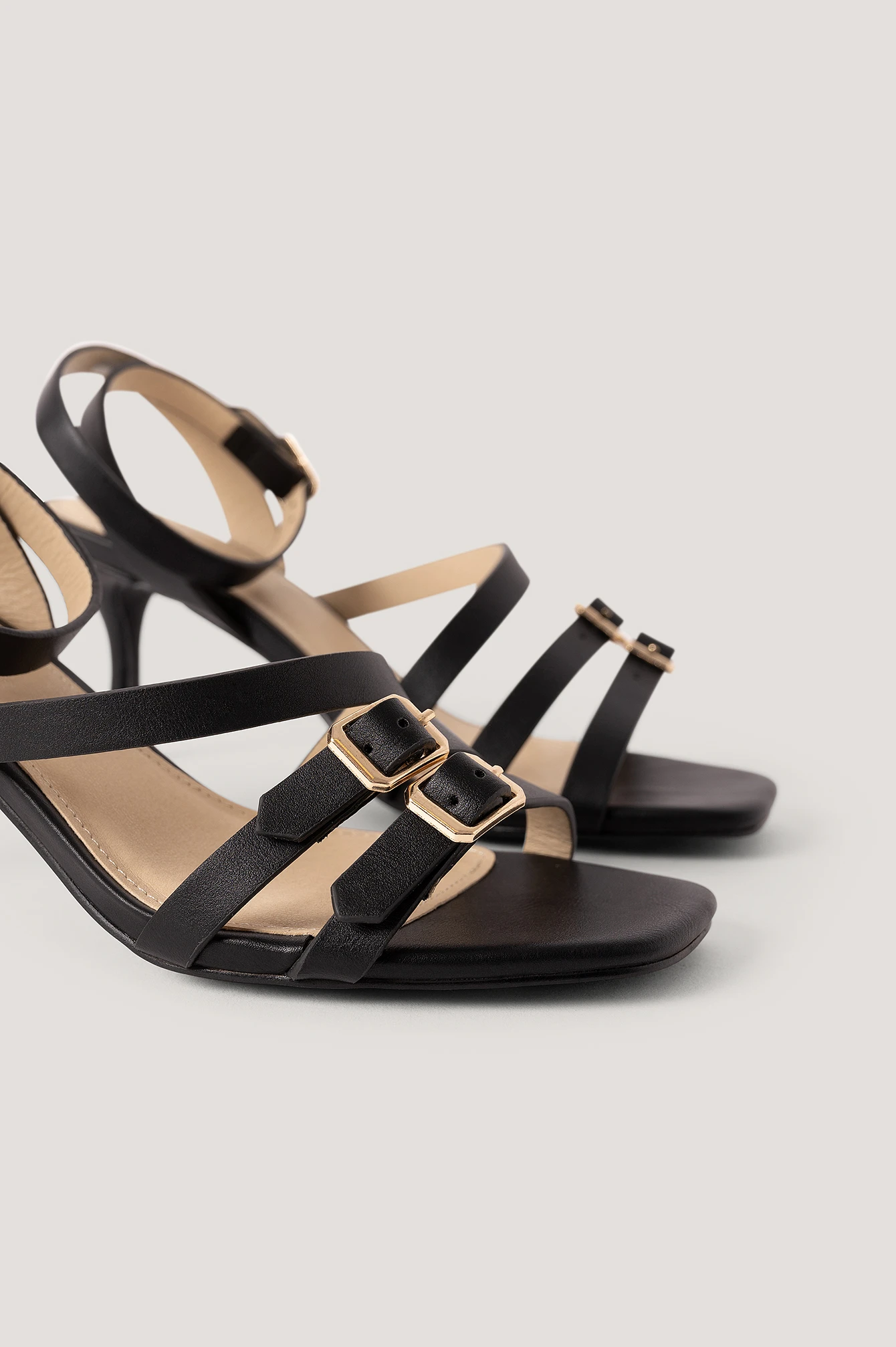These strappy sandals feature thin, low heels, an ankle-strap fastening with a buckle closure and straps with details with a buckle perfect for everyday use. Heel Height: 6 cm/ 2.36 in.