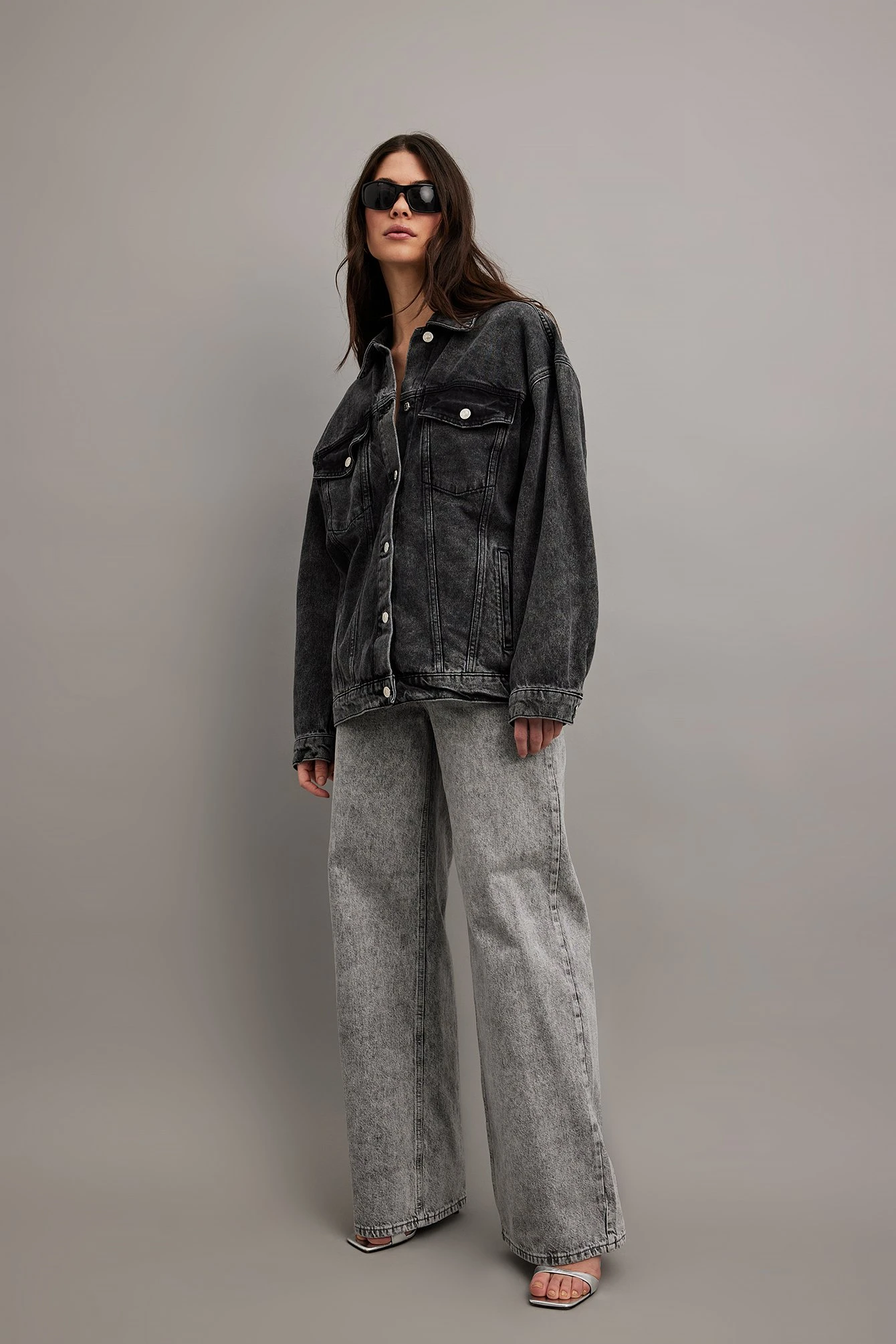 This denim jacket is oversized and made of organic cotton. It has a classic collar, drop shoulders and long sleeves with a button cuff. Our denim jacket features front flap pockets on the chest, open side pockets, an adjustable button detail on the bottom hem and a button closure.