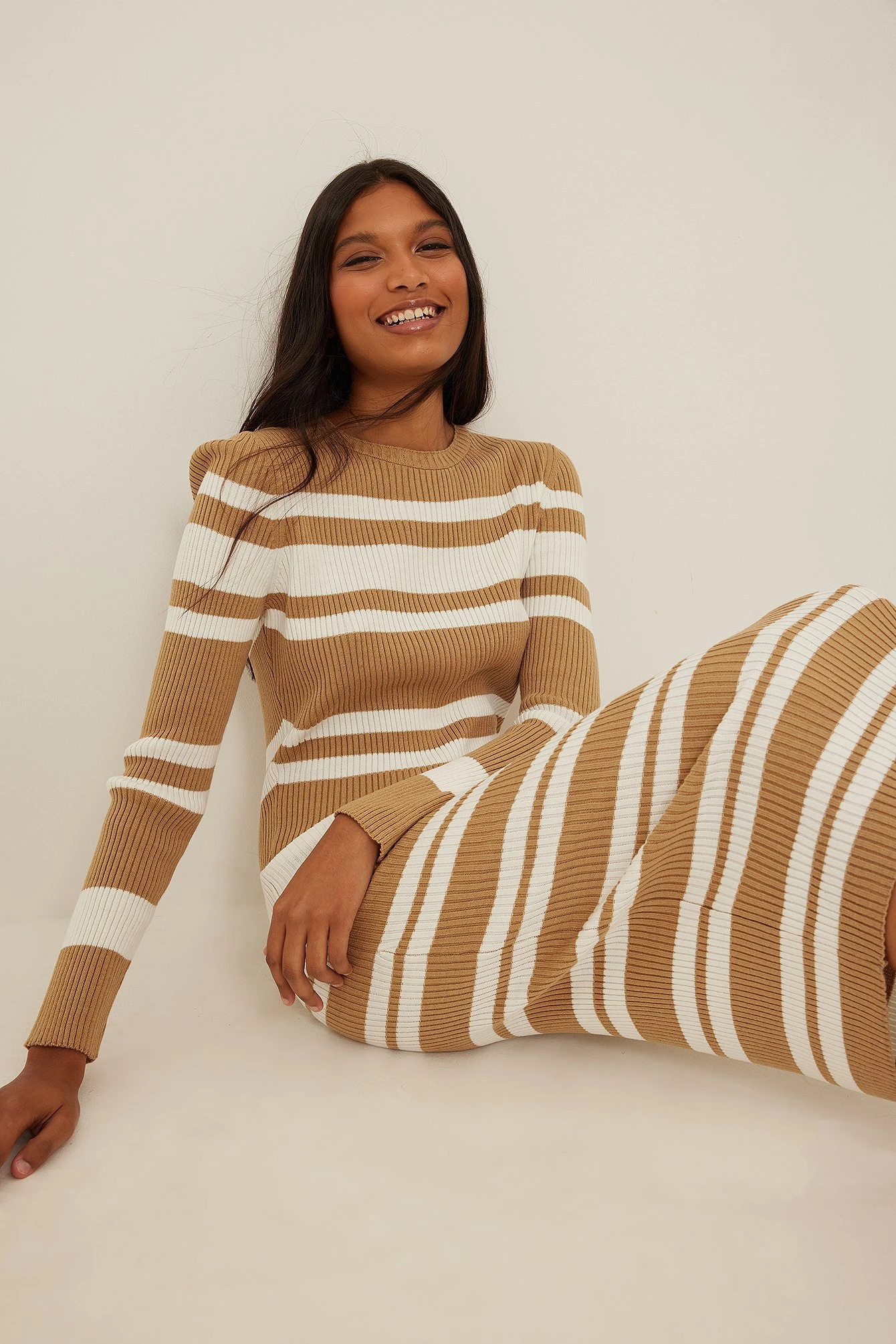 This midi dress is knitted and features a rounded neckline and long sleeves.