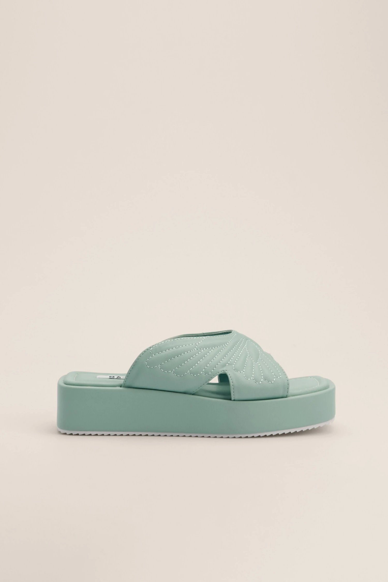 This sandal features a square toe, a wide strap with a butterfly shape and a platform heel. Measurements in size EU 39: Sole height: 3 cm / 1,01 in. Heel height: 4 cm / 1.57 i. Insole length: 25 cm / 9.84 in.
