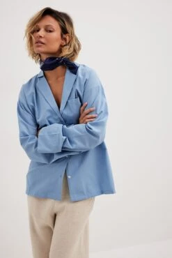 This shirt features a classic collar. It has a chest pocket and a button closure down the front. This shirt features long sleeves.