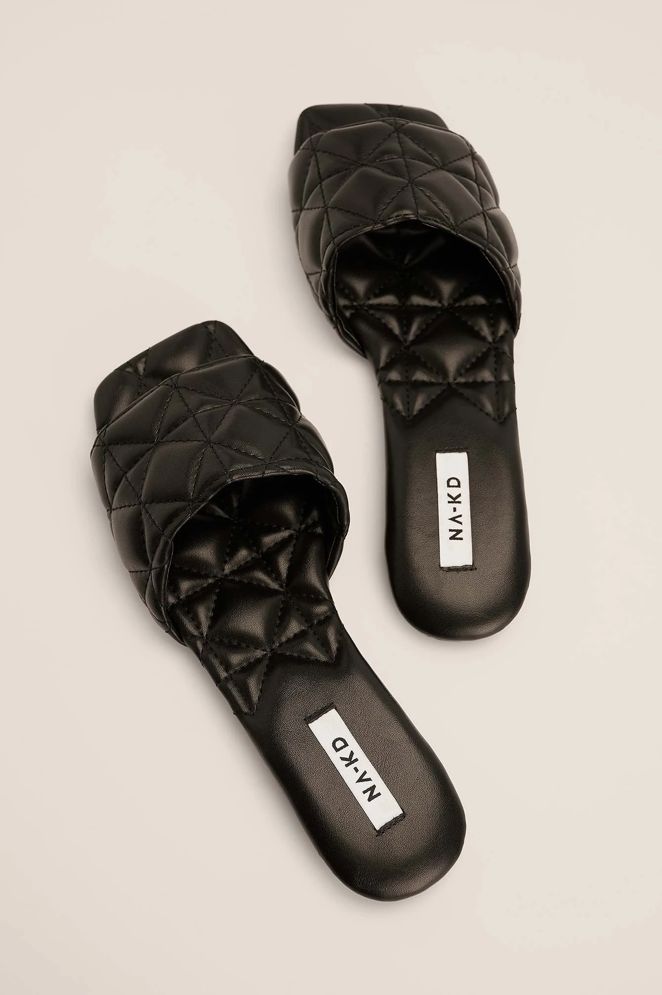 These slippers feature square toes, a flat heel and a quilted design. Measurements in size 39: Sole height: 0,1 cm / 0.1 in. Heel height: 0,6 cm / 0.4 in.