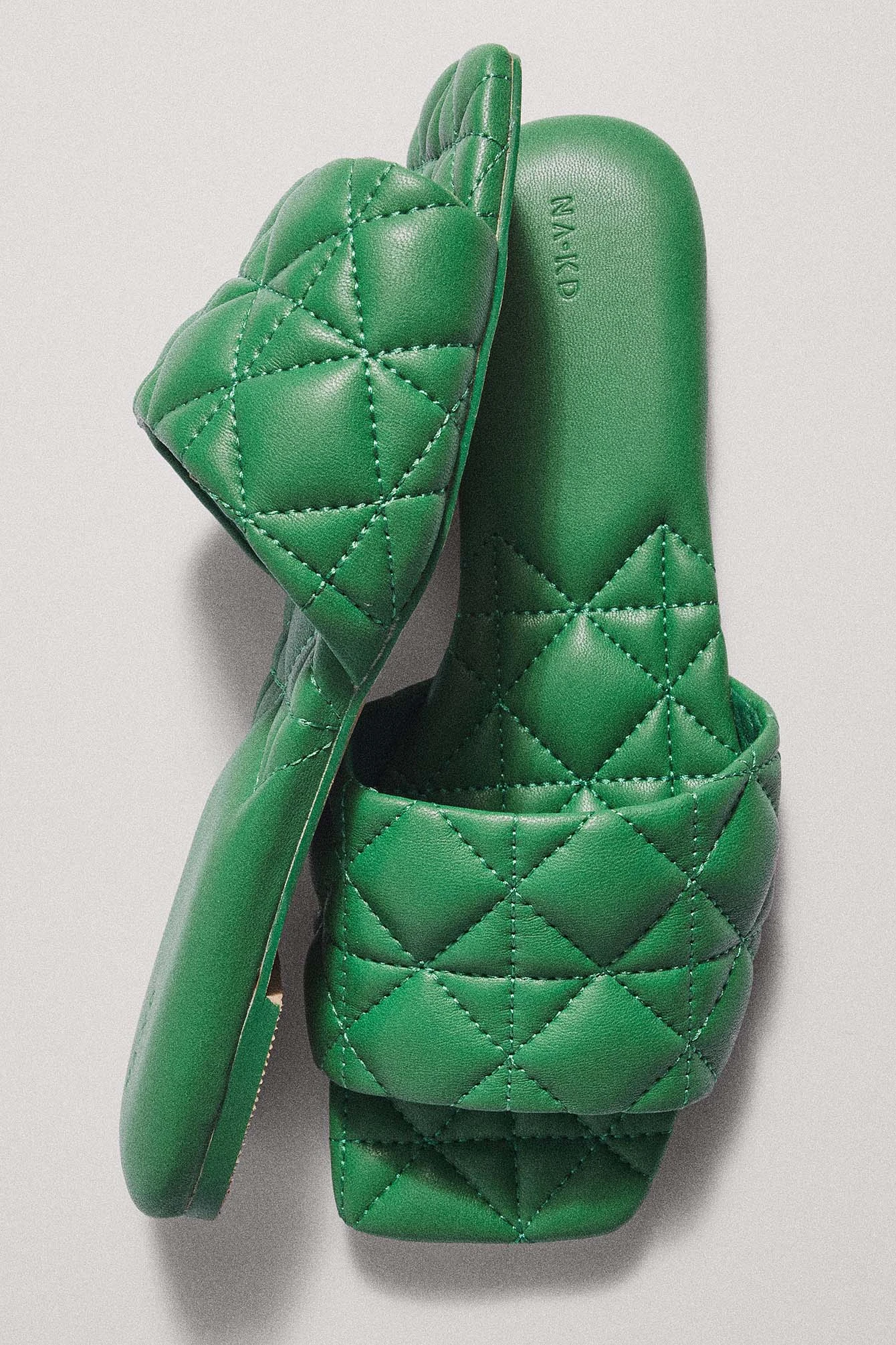 These slippers are quilted and feature a square toe. They have a comfy fit. Measurements in size 39: Sole height: 0,8 cm / 0.6 in. Insole length: 26 cm / 10.1 in.