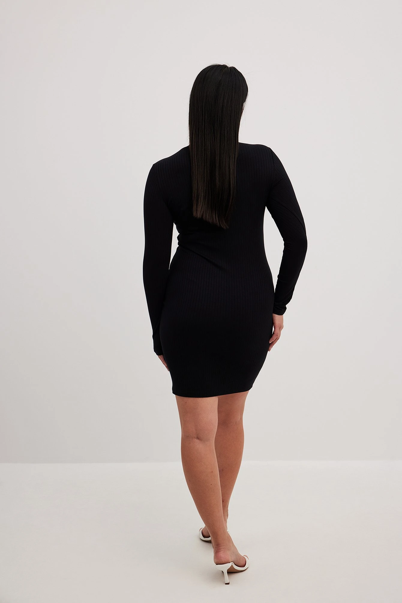 This mini dress features a round neckline, long sleeves and a ribbed stretchy material.