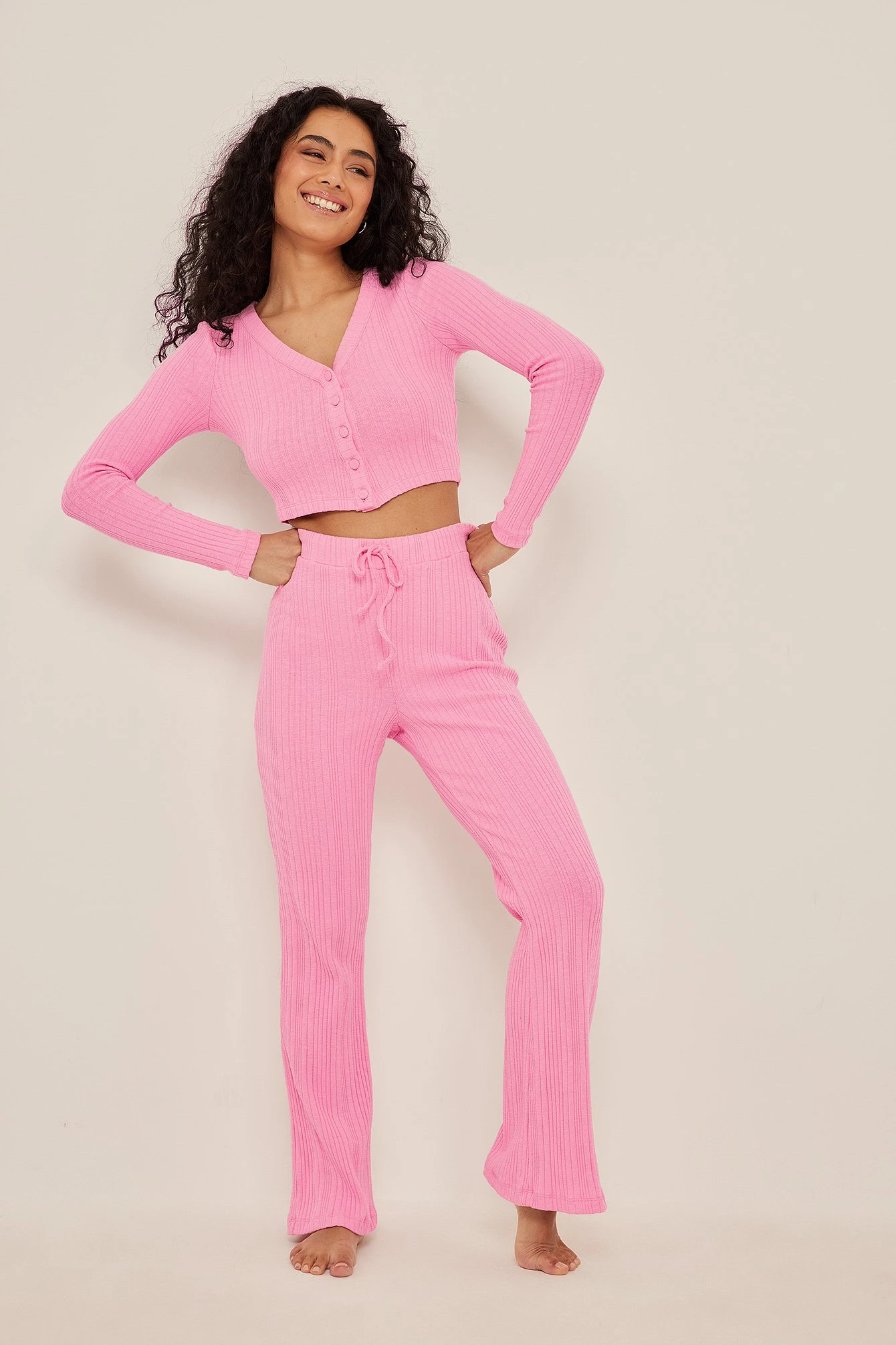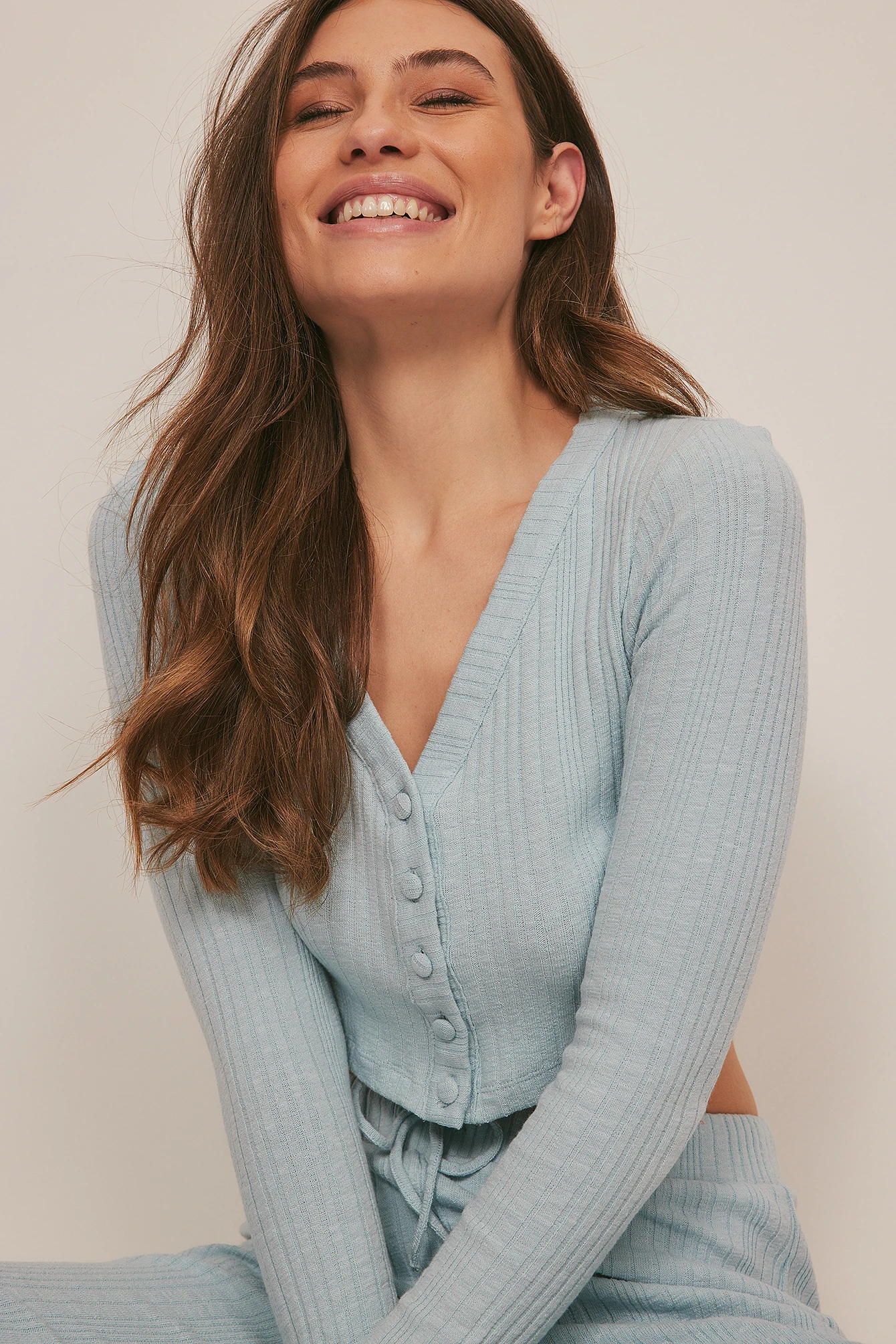 This cardigan features a V-neck, long sleeves, a button closure along the front and a stretchy rib design with a slim fit.