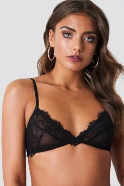 The Romantic Lace Bra by NA-KD Lingerie features a bralette design, a lace material, adjustable shoulder straps, and an open hook and eye closure on the back.