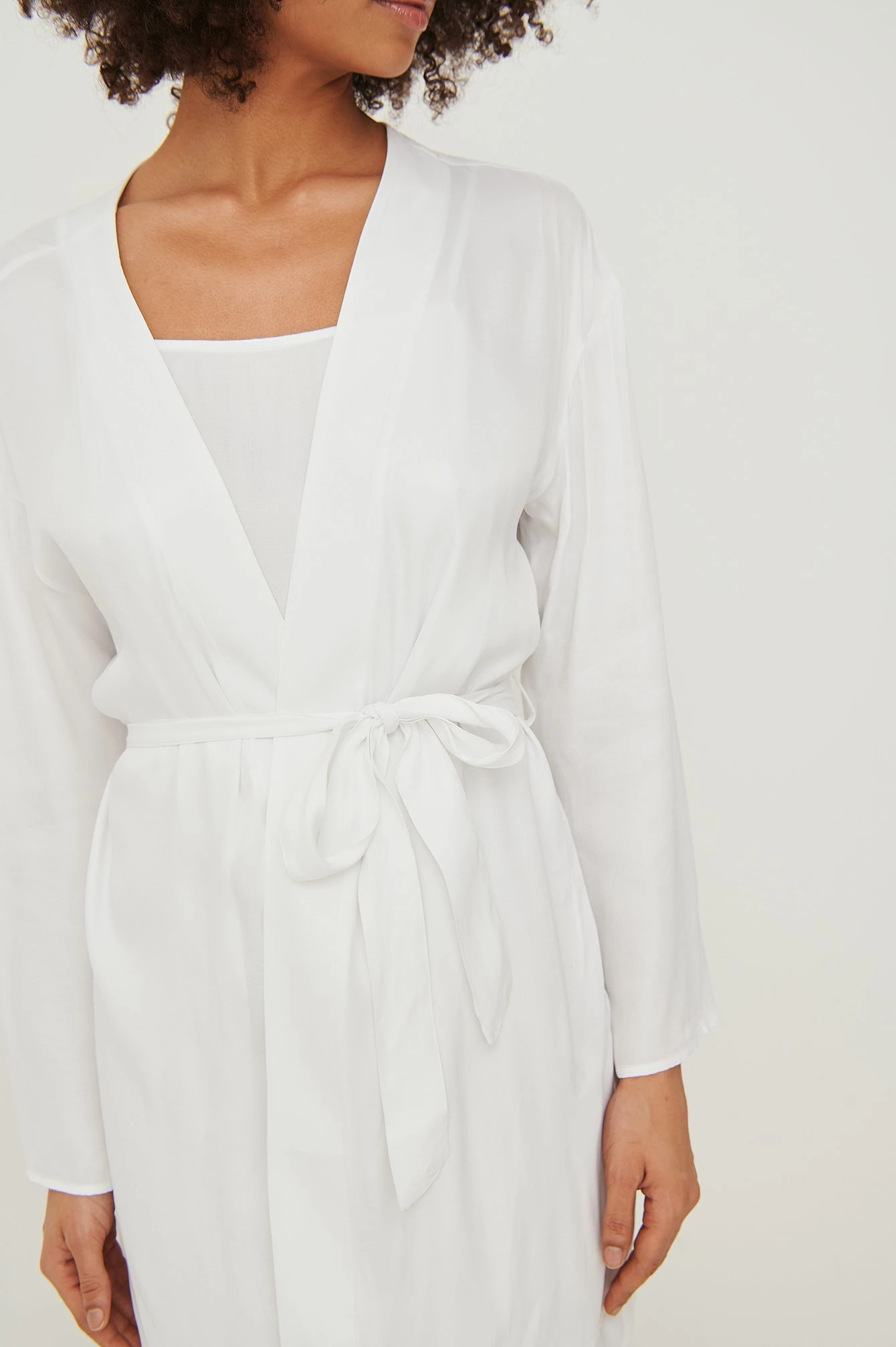 This robe features long sleeves, a belt, a mini length and a flowy comfy fit.
