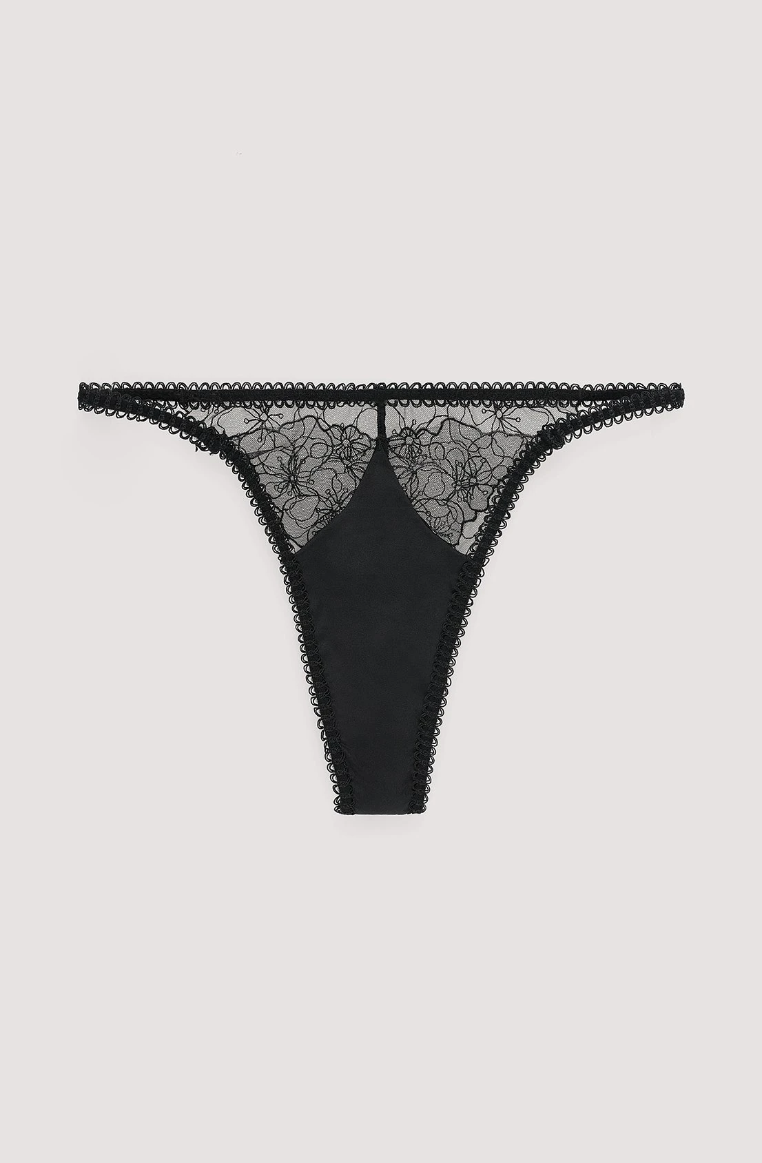 This thong features thin side straps, mesh material with sheer, floral embroidery detail and a crotch in soft jersey.