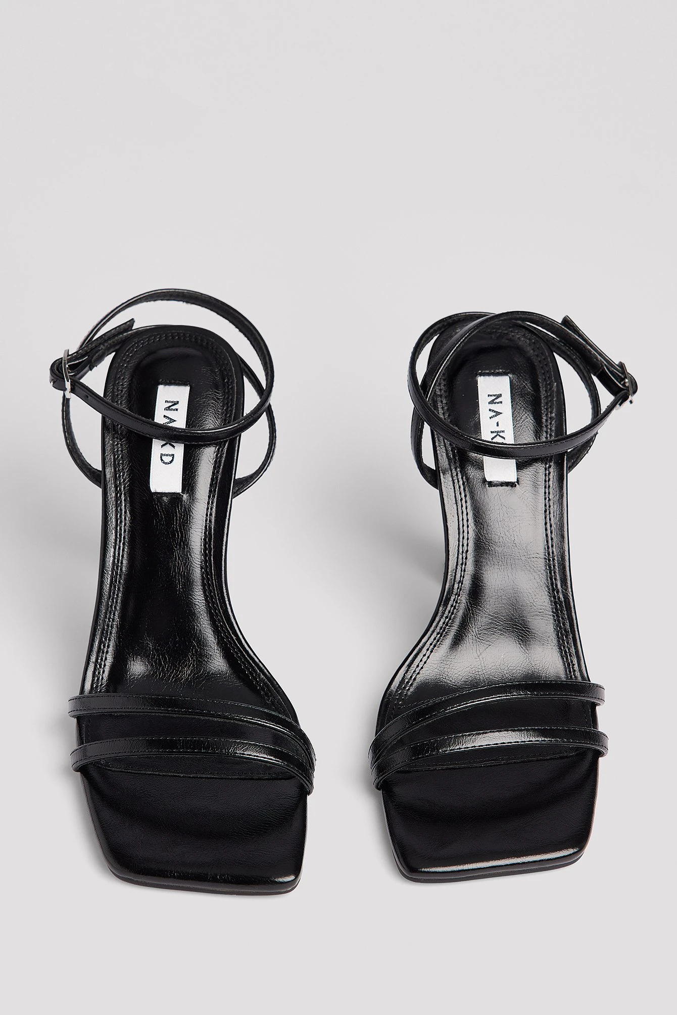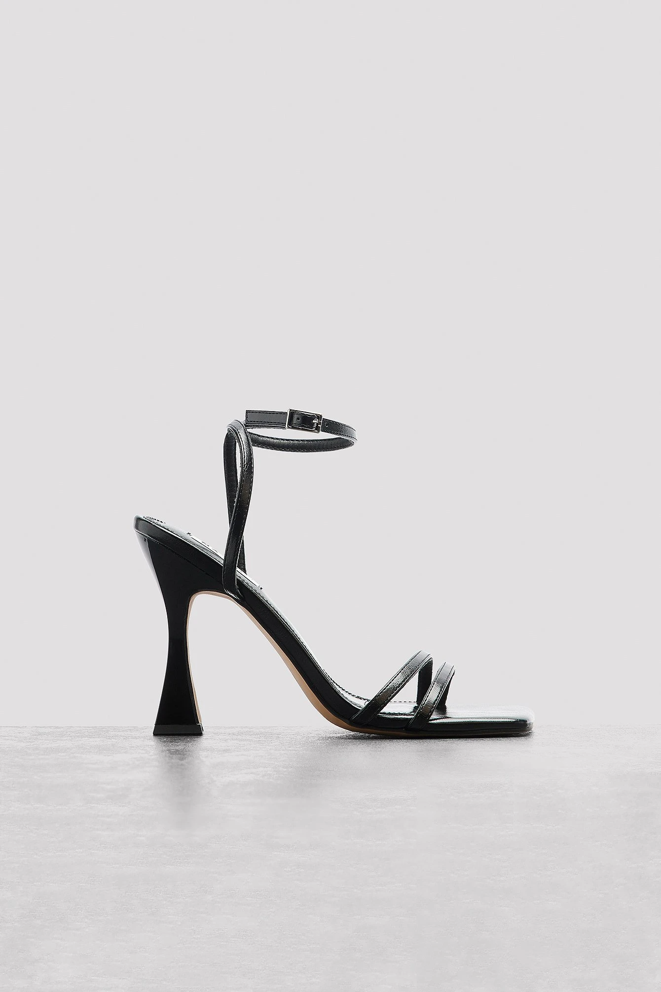 This high heel features a strappy sandal, a squared heel and a square toe. Measurements in size 39: Heel height: 10 cm / 3.9 in. Insole length: 25 cm / 9.9 in.