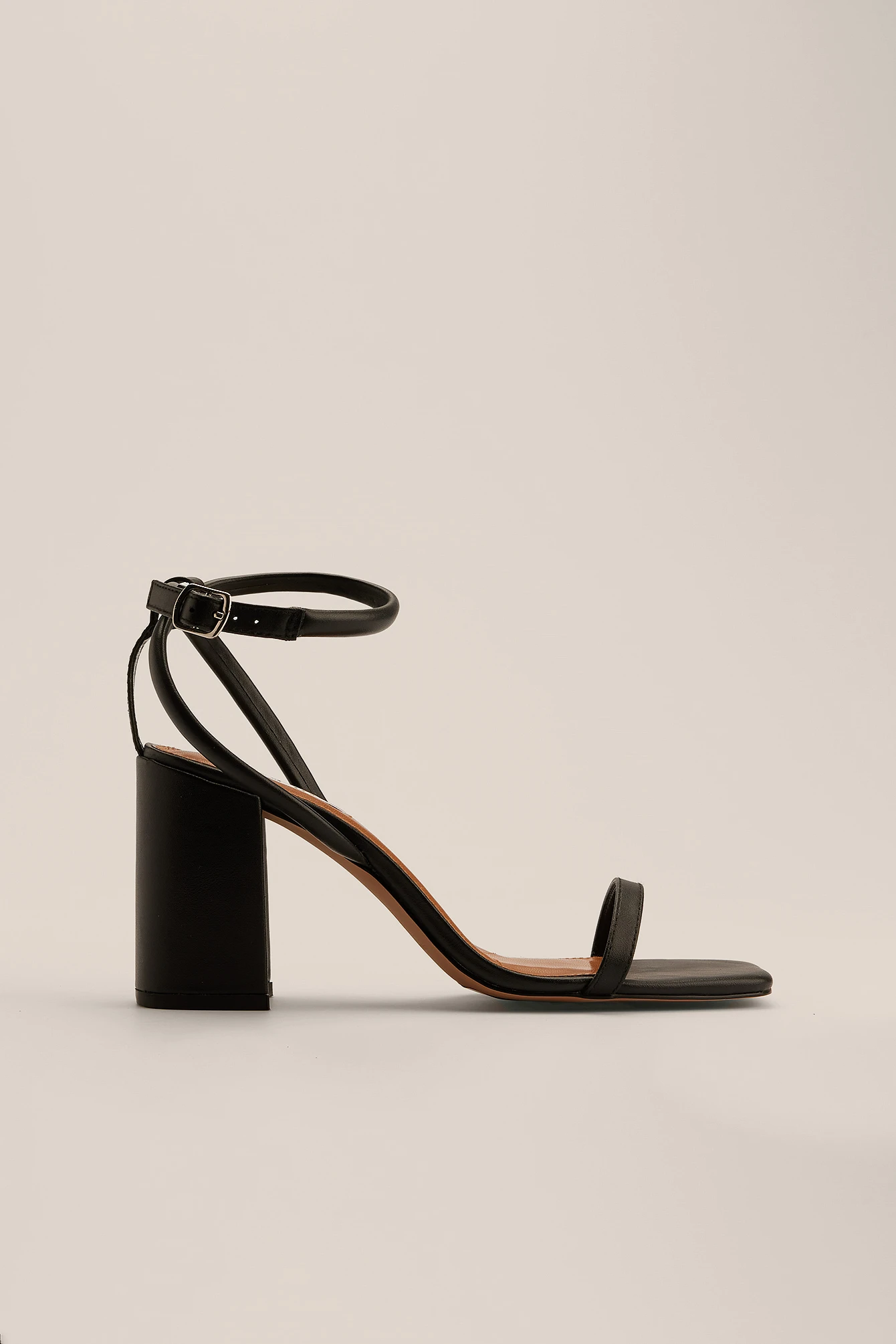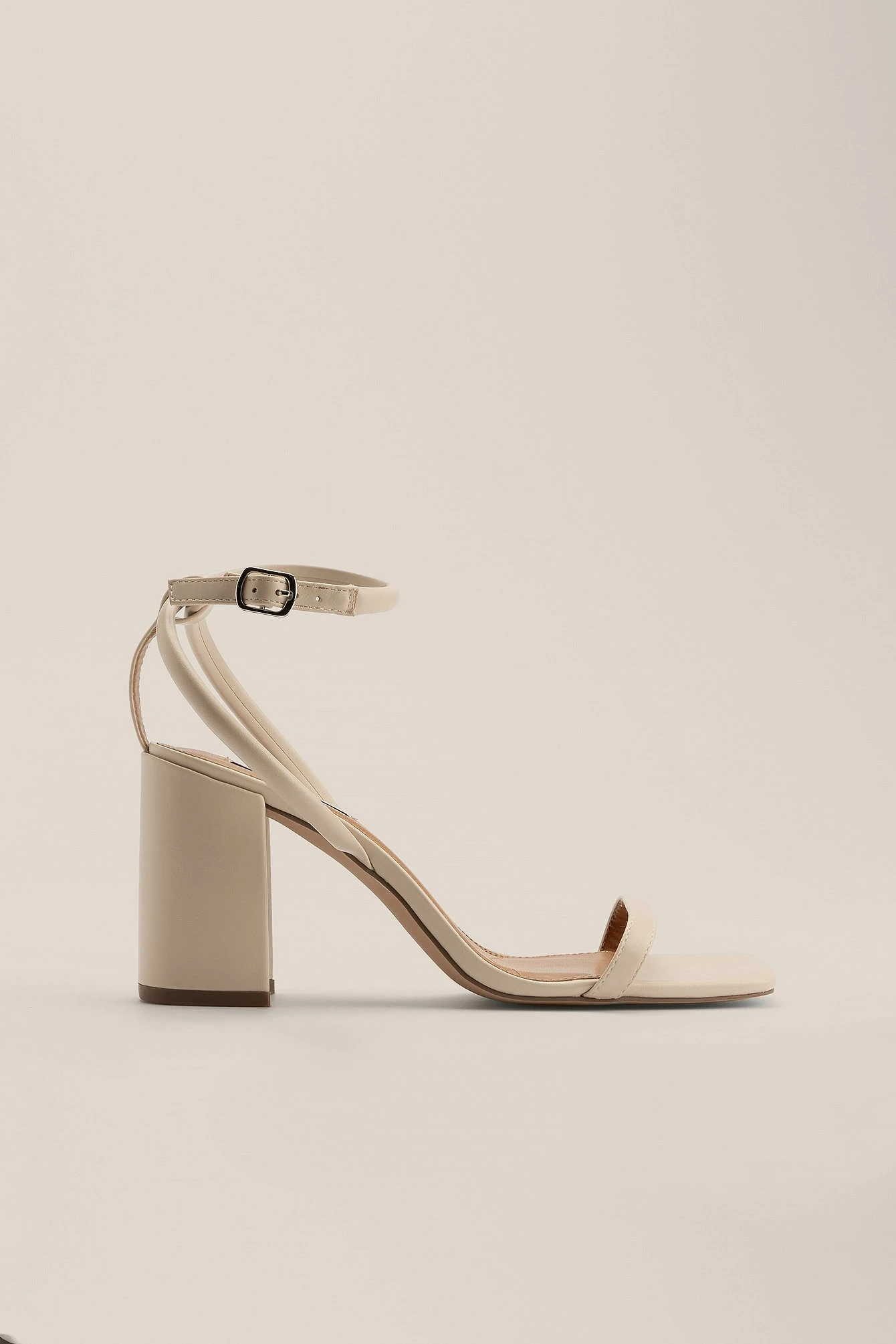 This strappy sandal features a squared toe, a thin strap on the front, an adjustable ankle-strap fastening and a block heel. Measurements in size 39: Heel height: 8,5 cm / 3.5 in.