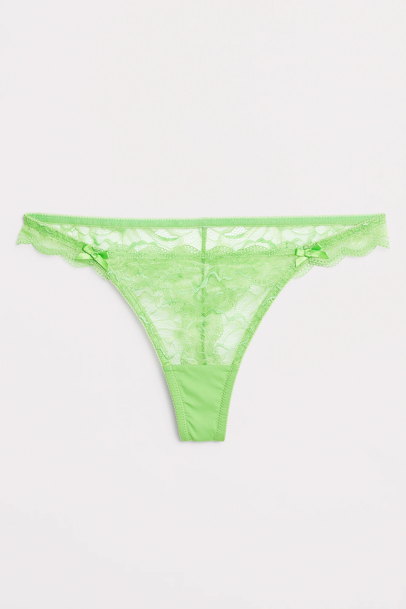 This thong features a lace design. It has bow details at the front.