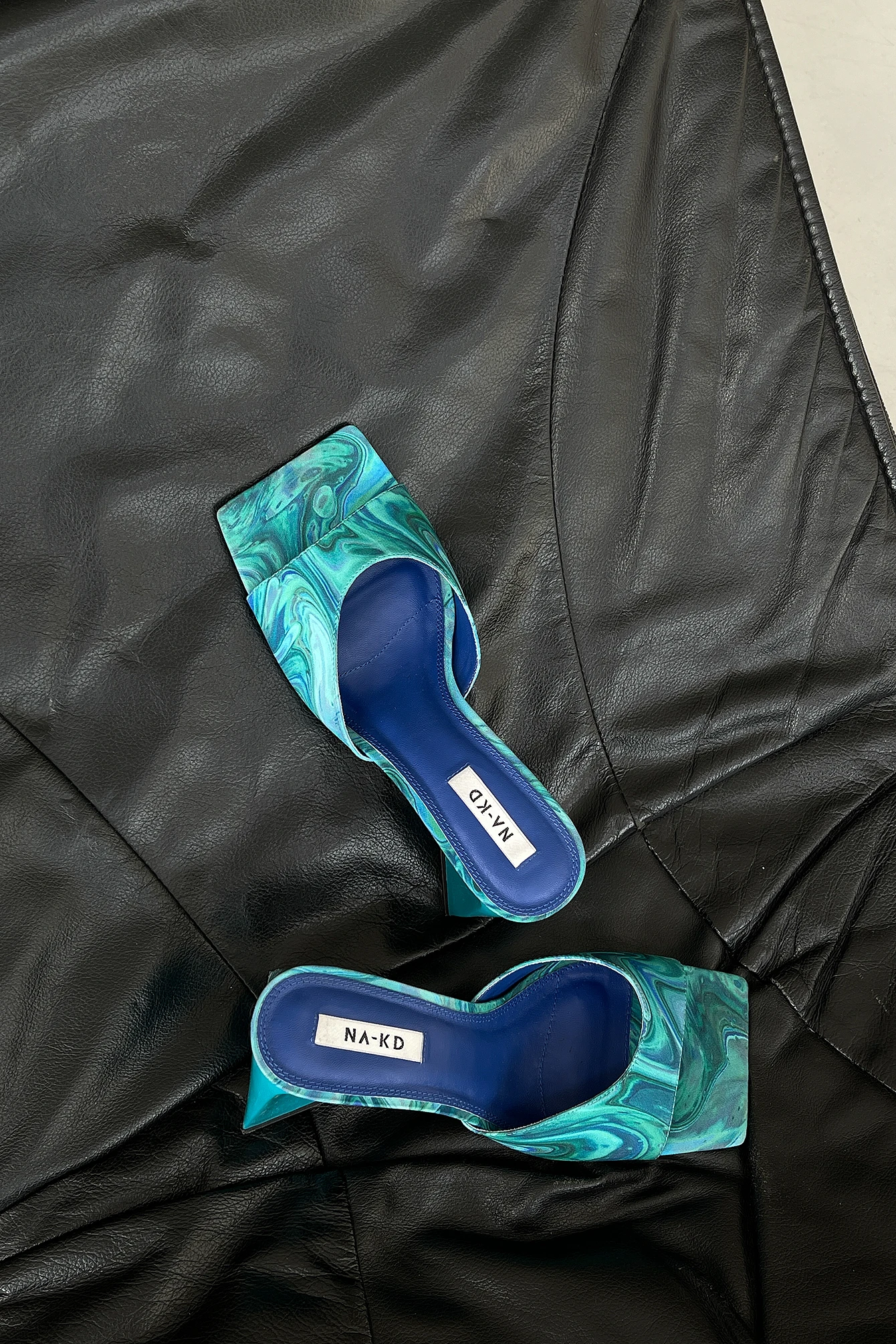 These mules feature a square, open toe, a triangle shaped block heel and a wide, rounded strap. Measurements in size EU 39: Heel height: 9 cm / 3.54 in. Insole length: 25,5 cm / 10,02 in.