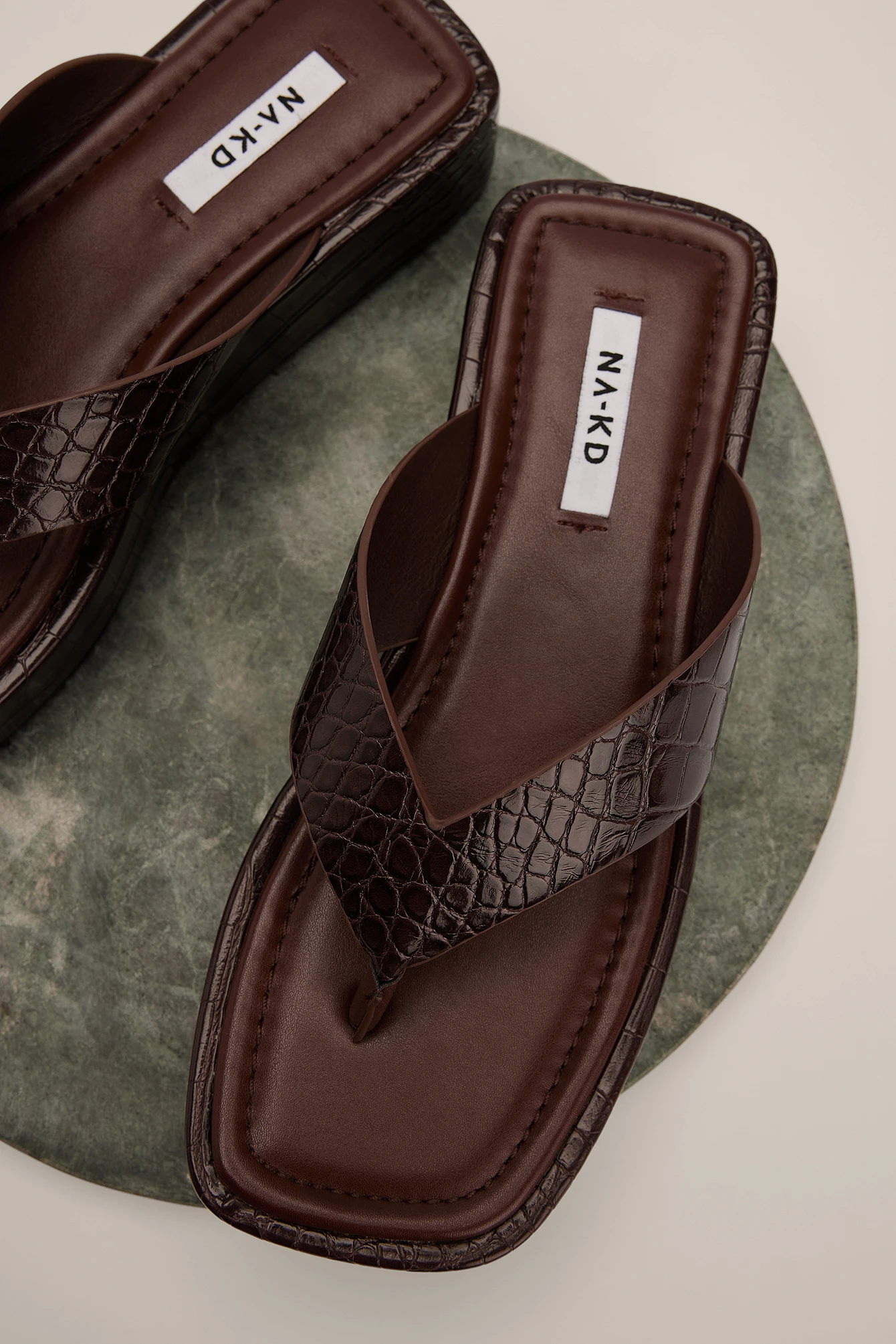 These slippers feature a square toe, a wide strap and platform heels. Measurements in size 39: Sole height: 2,9 cm / 1.2 in. Heel height: 4,5 cm / 1.13 in.