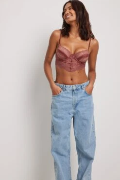 This bustier is unpadded and features thin, adjustable shoulder straps, underwired, seethrough lace cups with a detail in satin, soft lace material all over with decorative, satin seams and a v-shaped detail on the front and a hook-and-eye closure at the back.