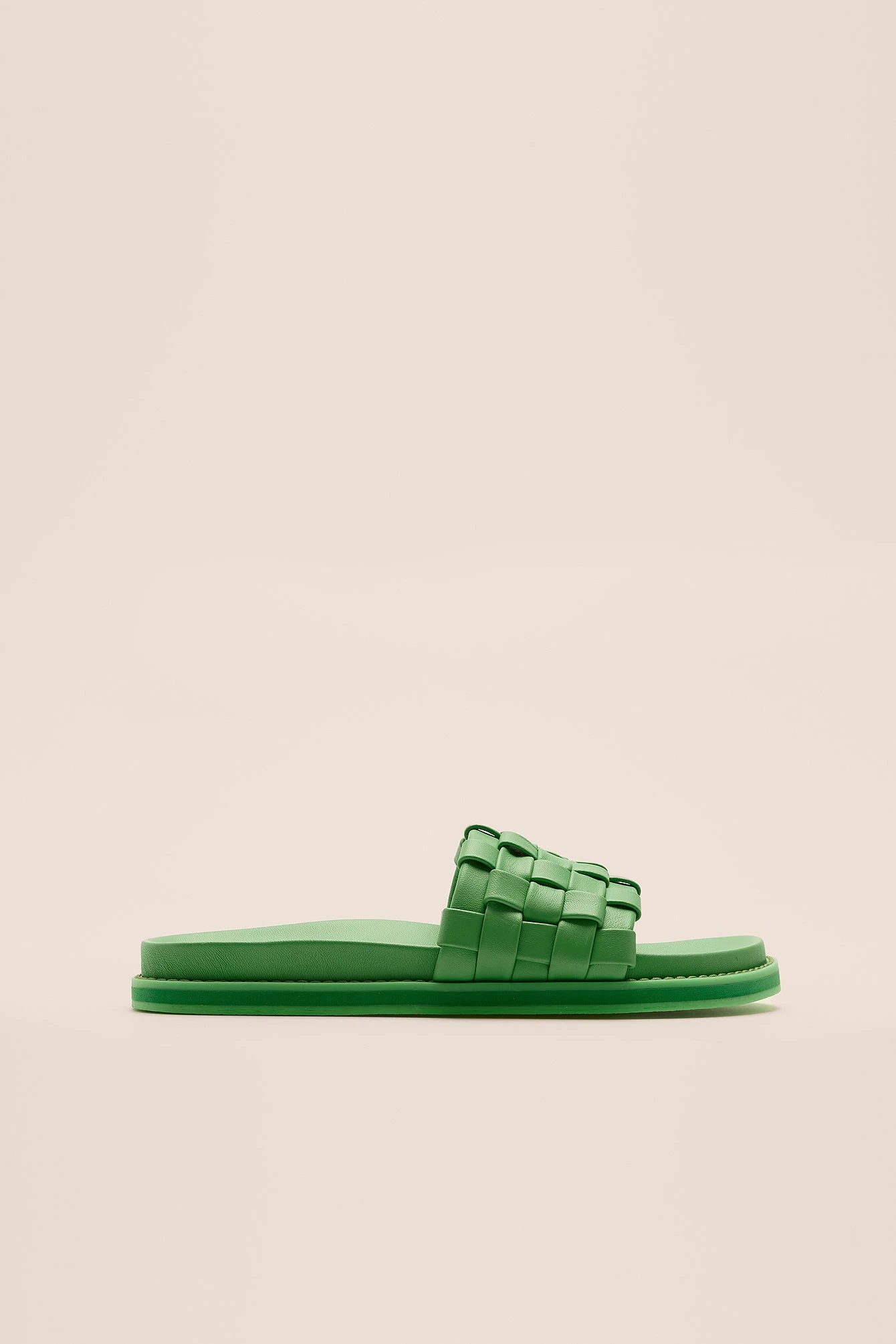 This slipper is made of leather and features a rounded toe and a braided design at the top. Measurements in size 39: Sole height: 2,5 cm / 0.98 in. Insole length: 26 cm / 10.23 in.